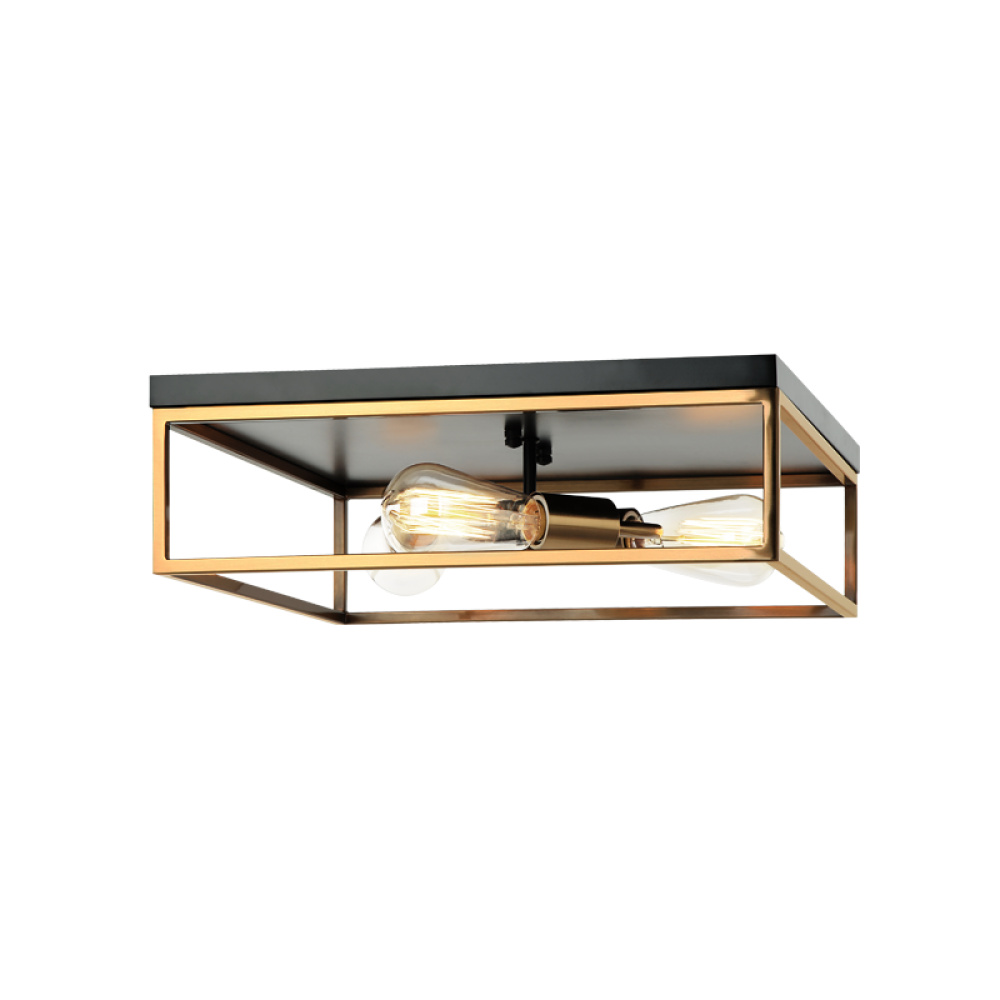 An eye-catching two-tone series with an Aged Gold Brass frame and bold Black top.The open concept maximizes the available light for a true statement piece. Clarke is available in 2 sizes in both a round and square shape.