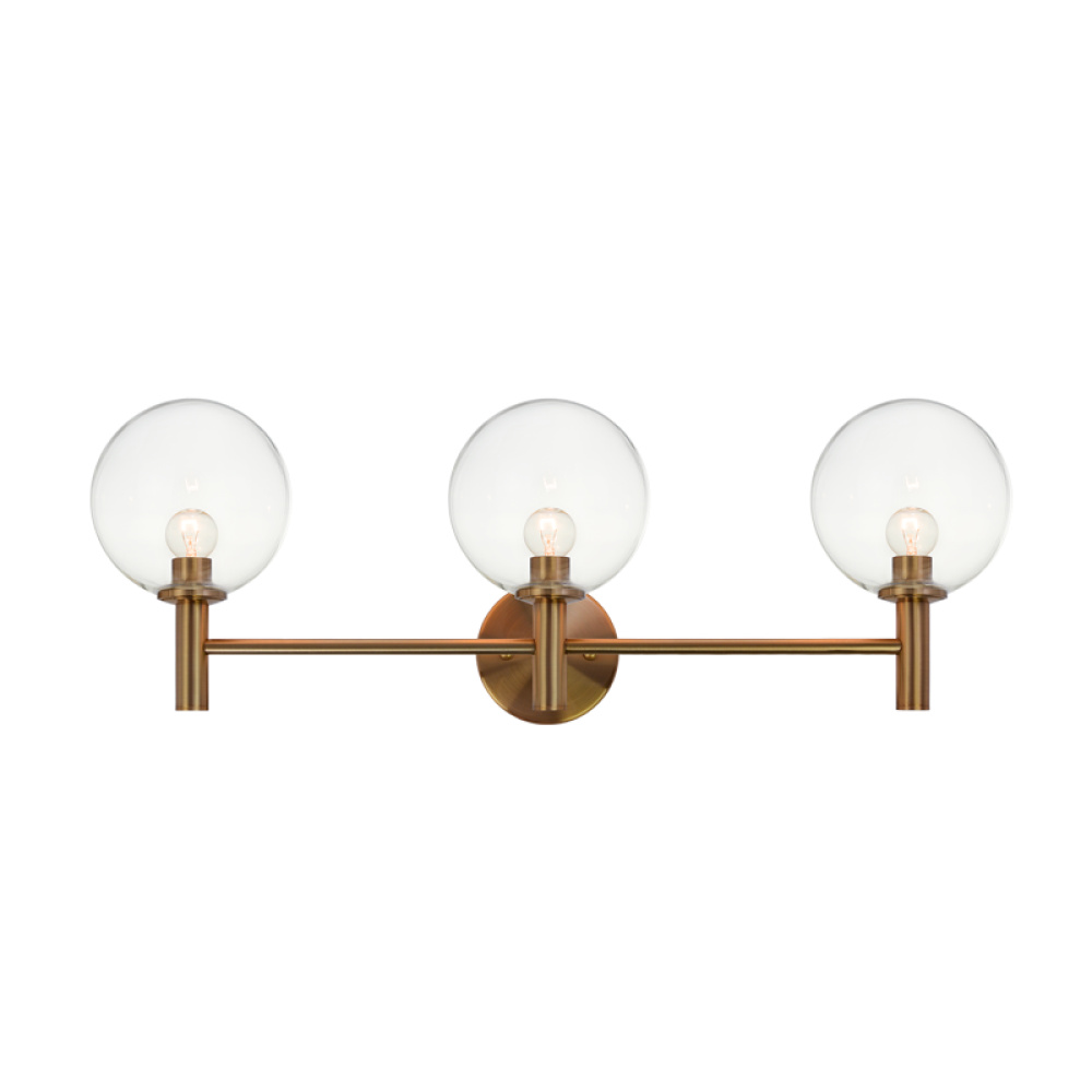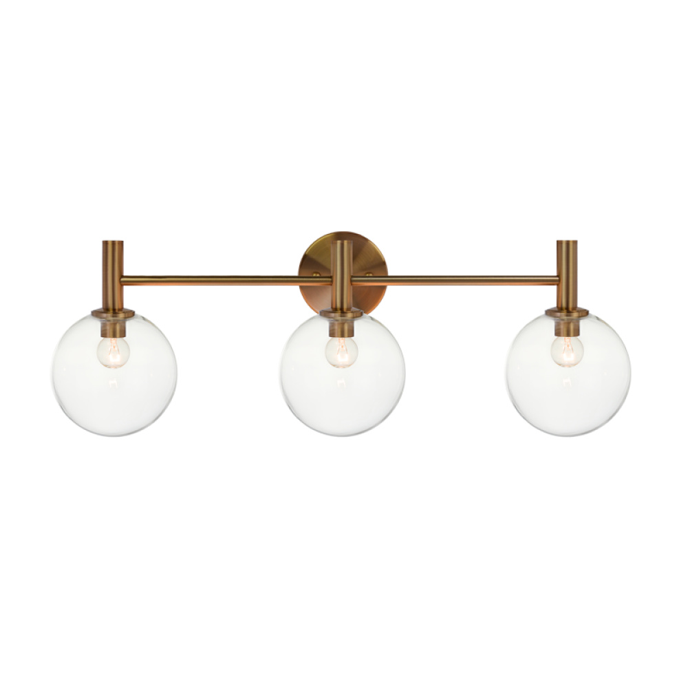 An 80’s inspired series featuring large bulbs as the main attraction. Cosmo is available with Clear or Opal glass along with 2 finishes – Black and Aged Gold Brass. A versatile vanity series that is offered in 4 sizes. LIGHTBULBS NOT INCLUDED