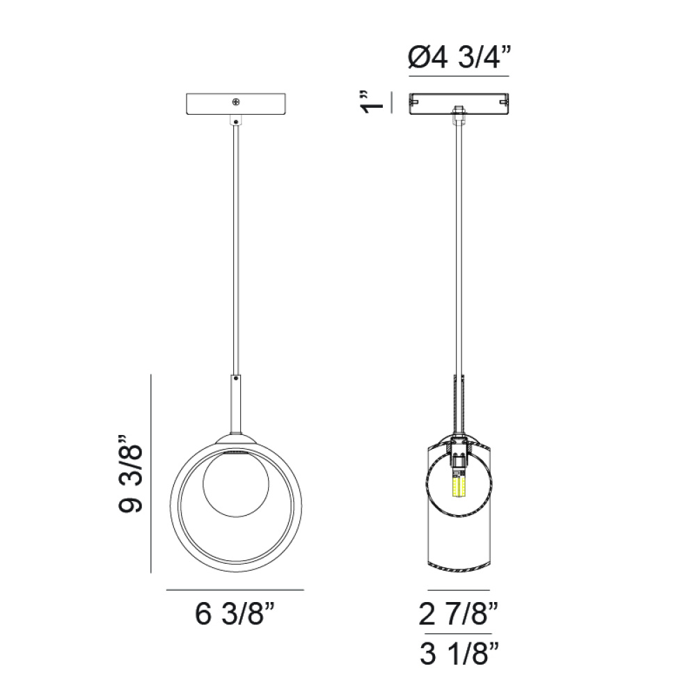 1 LT "DELCIA" D6.3" BK+ SM GLASS PENDANT G9 40W
