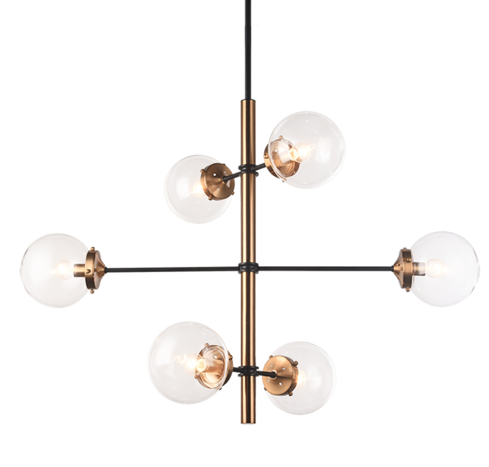Inspired by the Mid-Century style, Enchant comes with a sleek and modular rod design. The polished series comes in 2 sizes and 2 finishes: Aged Gold Brass and Chrome rods highlighted by black. Available in either Clear or Opal glass.LIGHTBULBS NOT INCLUDED
