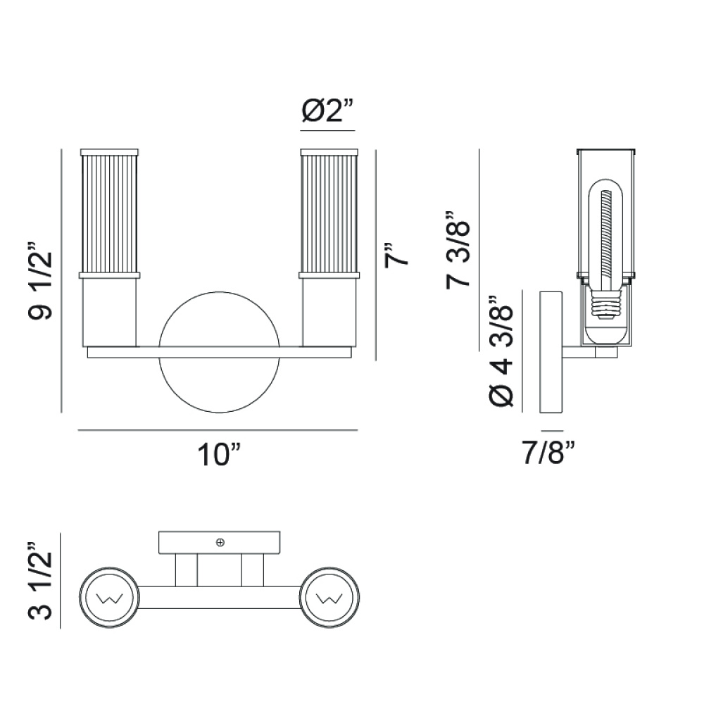 2 LT 10"W x H9.5" "KLARICE" WALL SCONCE -MB-CLEAR GLASS