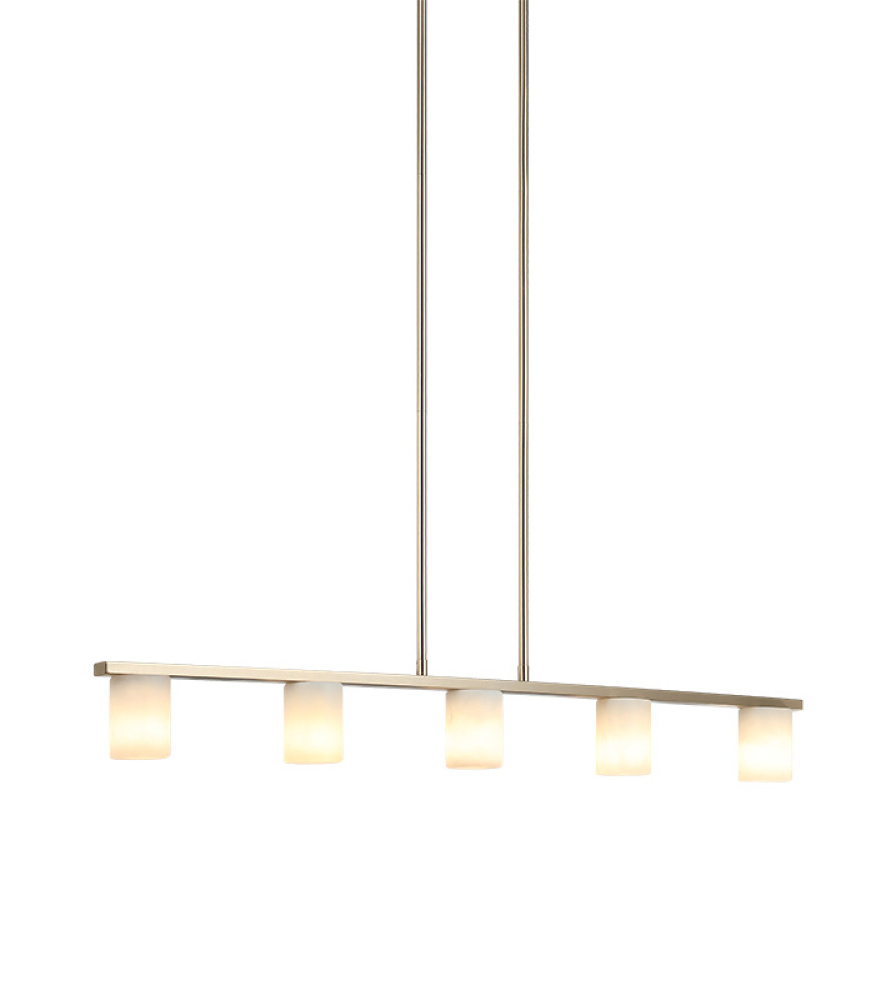 Lindy Sophisticated simplicity meets elevated warmth. Each alabaster shade—designed to face either upward or downward—casts a soft, ambient radiance that adds depth and comfort to any space. Both finishes introduce a subtle touch of luxury, allowing the fixture to stand out as a statement piece while remaining a harmonious complement to contemporary or transitional interiors. LIGHTBULBS NOT INCLUDED