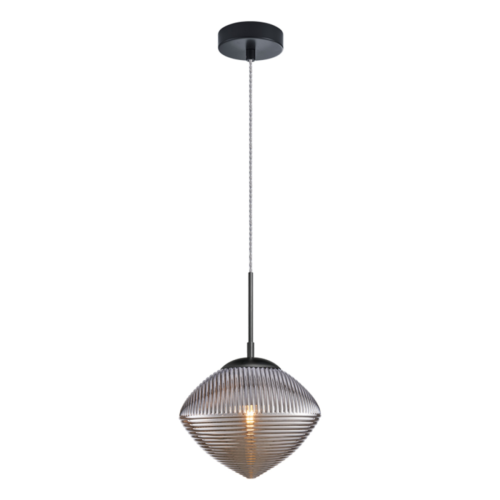 Pendant with a spiral and clean lined design in Cognac or Smoked glass would be a stunning focal point over an island or cozy lounge area. Comes in 3 styles of glass in Chrome and Matte Black canopy.