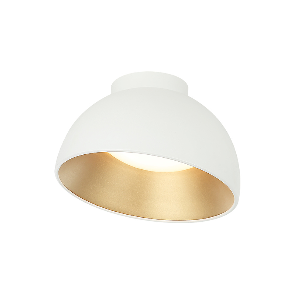 This is a lovely flush mount light! The Zenith is a sleek, modern look. The way the light is partially shielded by the outer shell creates a focused glow that would add a sophisticated touch to a space. The design makes it ideal for areas where you want both style and subtle lighting. It swivels for directional light and comes in Matte Black or Matte White with a gold interior.
