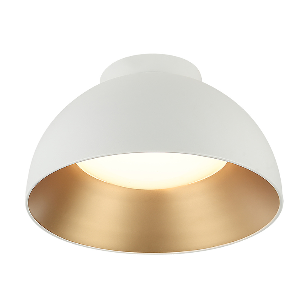 This is a lovely flush mount light! The Zenith is a sleek, modern look. The way the light is partially shielded by the outer shell creates a focused glow that would add a sophisticated touch to a space. The design makes it ideal for areas where you want both style and subtle lighting. It swivels for directional light and comes in Matte Black or Matte White with a gold interior.