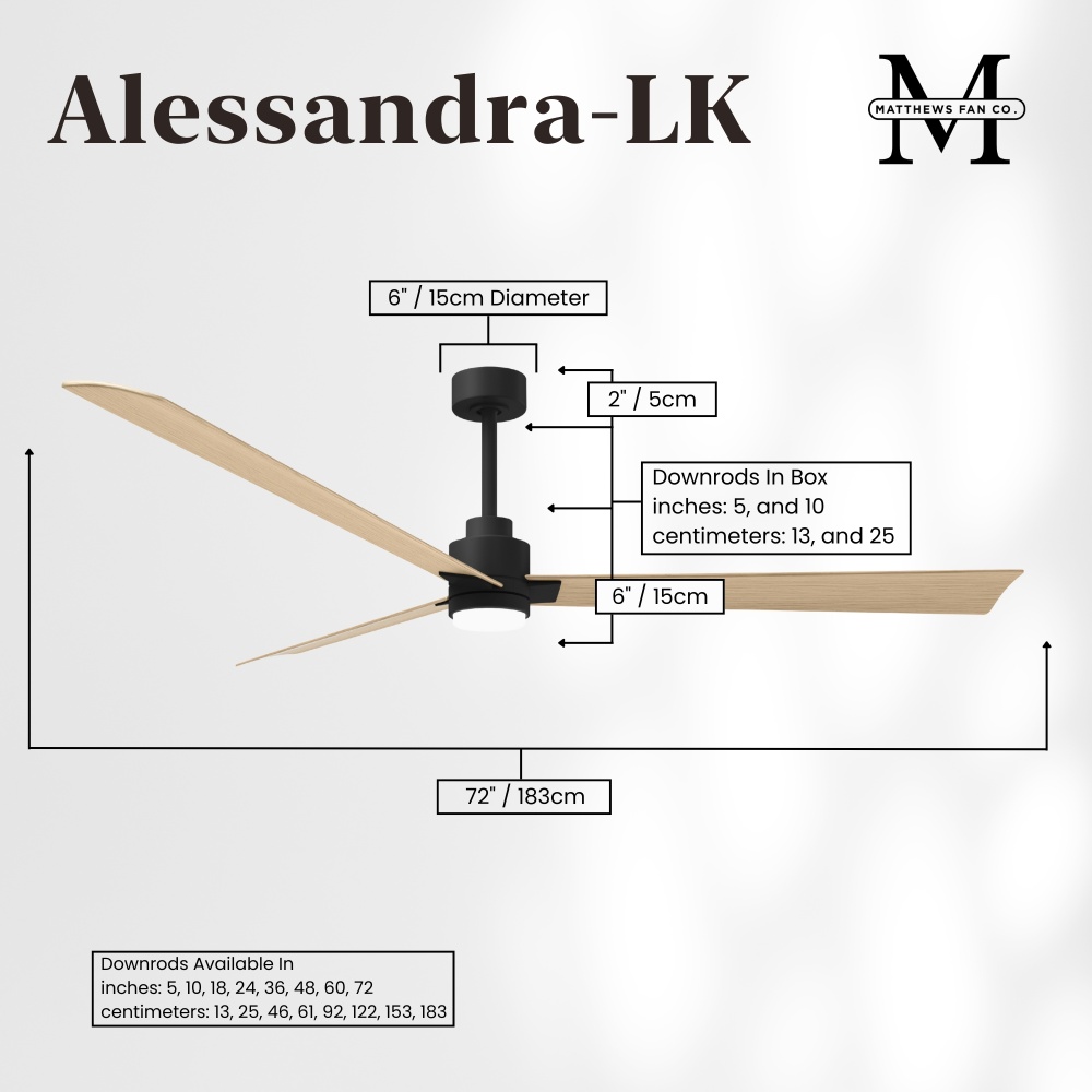 Minimal form with maximum efficiency. with a wide range of sizes, the Alessandra can accommadate any size space. This thoughtfully crafted and versatile fan will complement any aesthetic and improves the health and comfort of any room. Highly customizable, the Alessandra is available in 5 different body finishes, 7 blade options and even a color changeable light kit. Suitable for fully exposed outdoor areas. Backed by a limited lifetime warranty, our fans are of the highest quality and will dutifully perform for years to come.