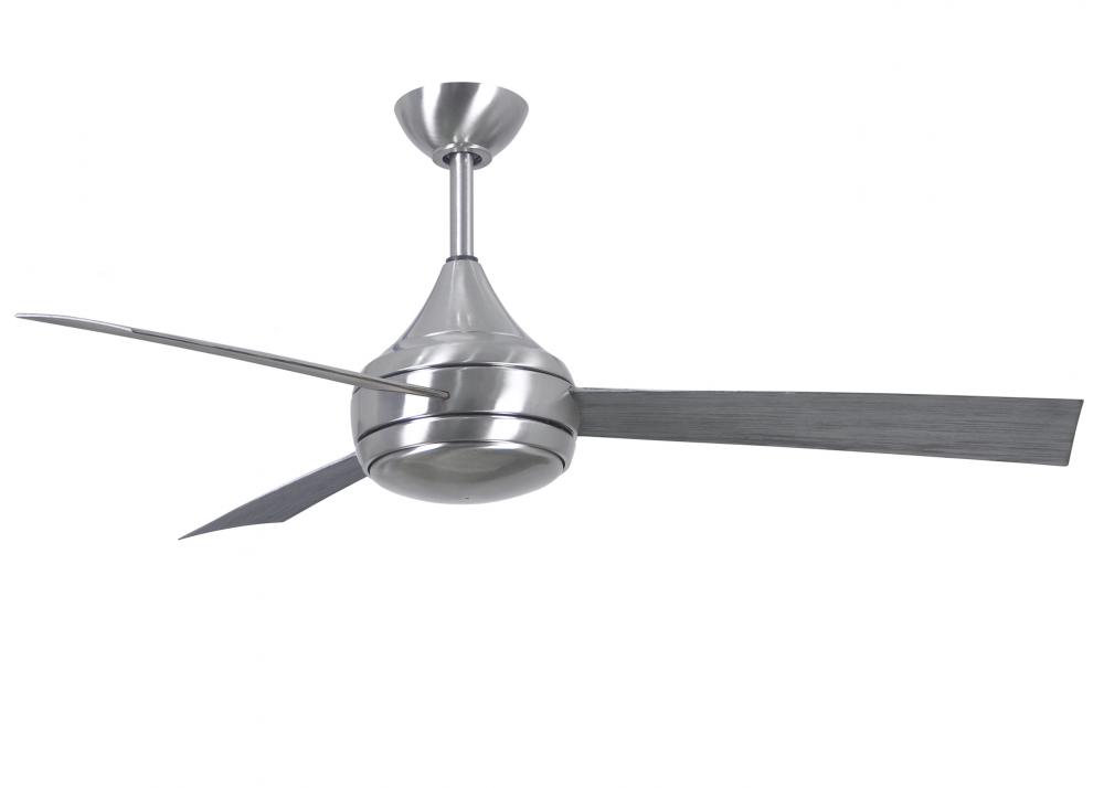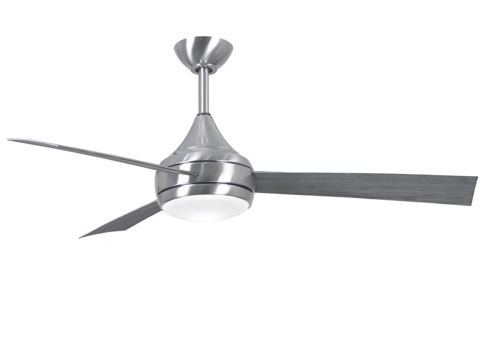 With teardrop motor housing, the Donaire 316 marine grade stainless steel wet location ceiling fan is transitional in design. Donaire is finished in brushed bronze or brushed stainless and is equipped with an 18W LED, dimmable light kit with optional metal cover.
