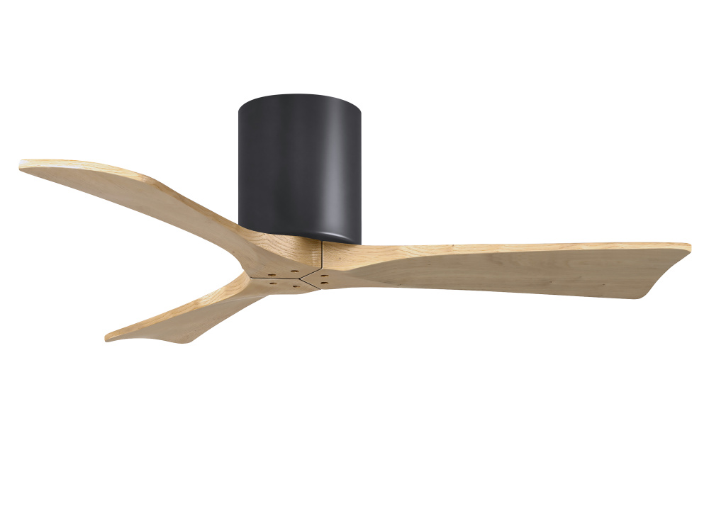Irene-3H - Three Blade Flush Mount Paddle Fan - 42" - Matte Black Finish - Light Maple Tone Blad