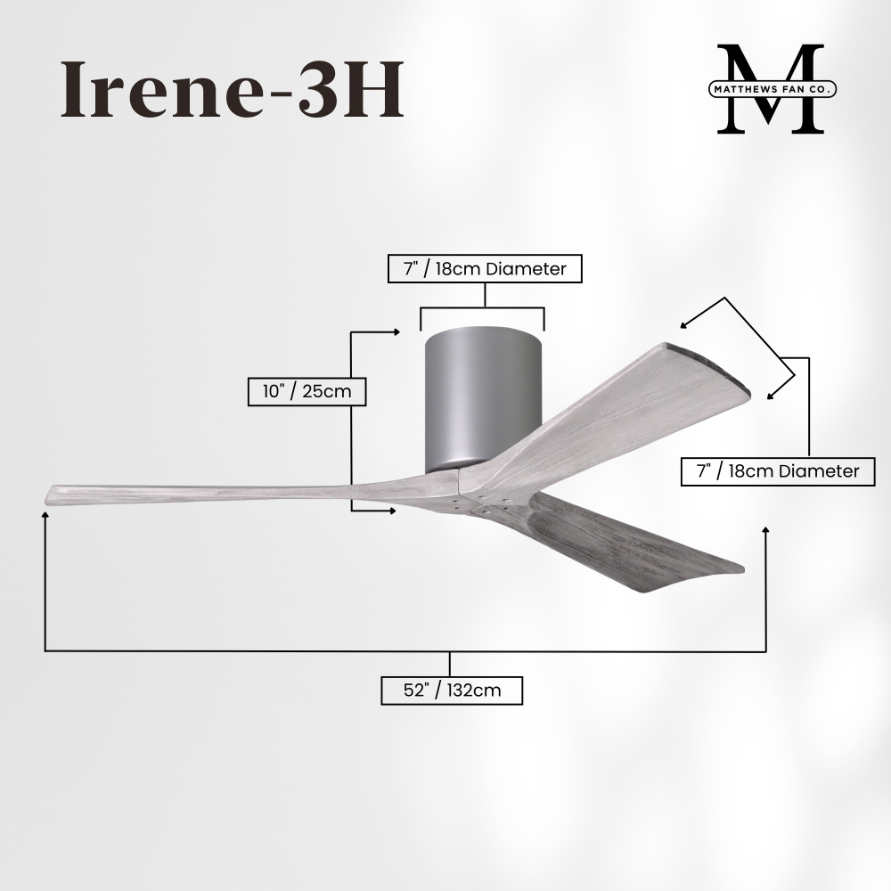 Irene-3H - Three Blade Flush Mount Paddle Fan - 52" - Brushed Nickel Finish - Barn Wood Tone Bla