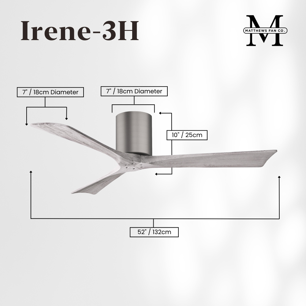 Irene-3H - Three Blade Flush Mount Paddle Fan - 52" - Brushed Pewter Finish - Barn Wood Tone Bla