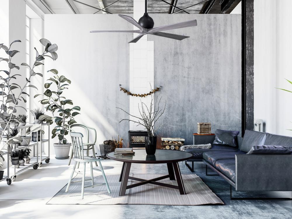 Irene-5 - 60" Five Blade Paddle Fan - Matte Black Finish - Barn Wood Tone Blades