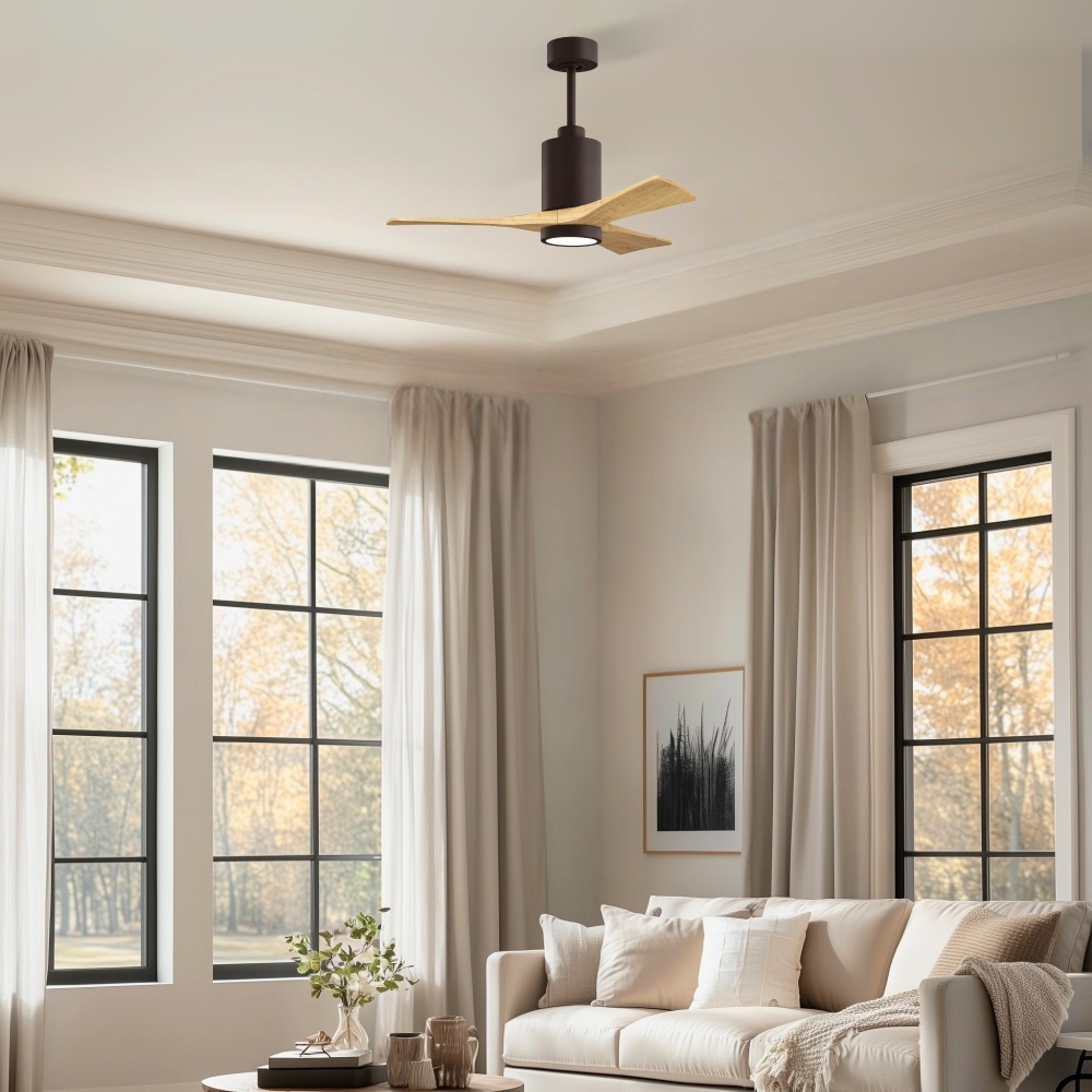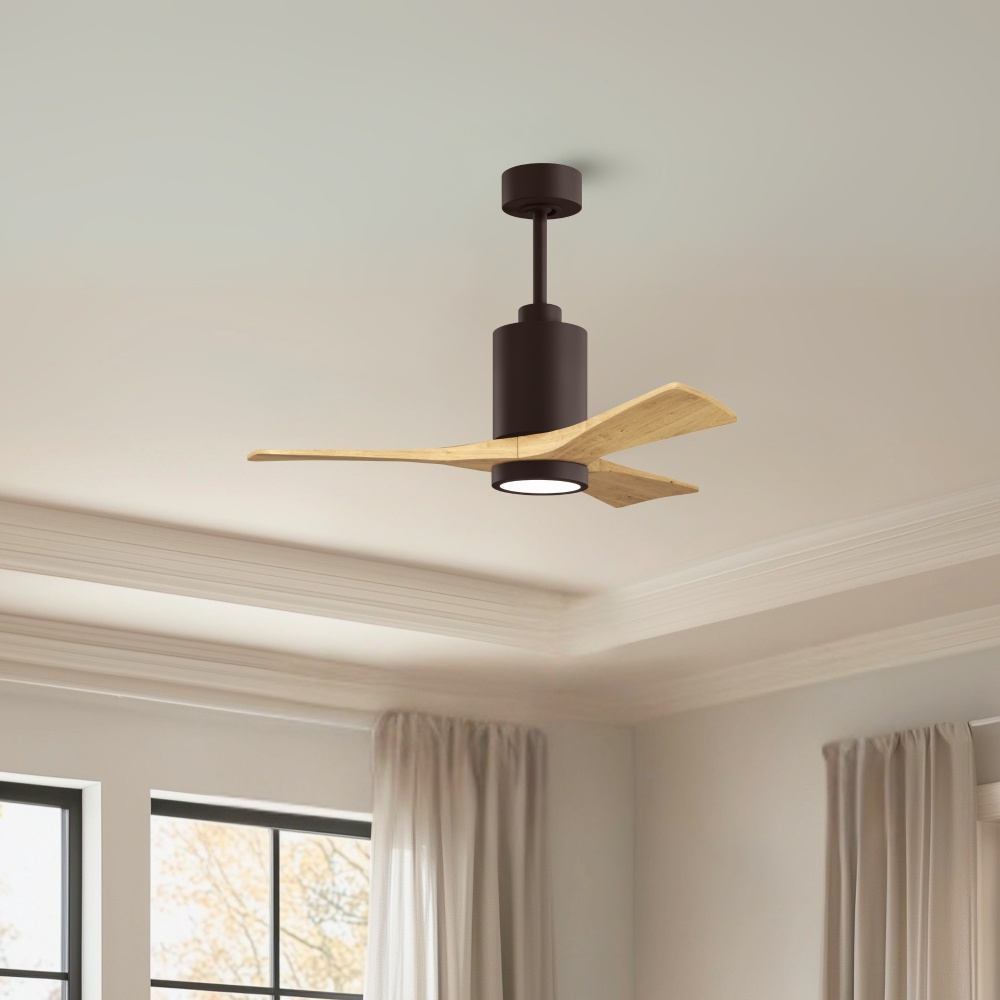A complement to any commercial or residential space, the Patricia 3 seamlessly combines innovation with simple, refined design. Its elegant aesthetic belies its robust construction. Solid wood blades revolve around a balanced, cylindrical DC motor housing. Air is circulated efficiently with barely more than a whisper. An eco-conscious 5CCT LED color changing light kit completes the package, making Patricia 3 sophisticated, efficient and green.