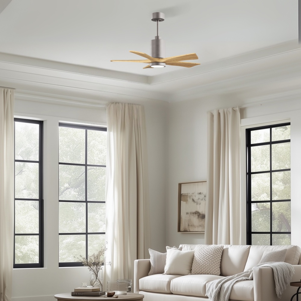 A complement to any commercial or residential space, the Patricia 5 seamlessly combines innovation with simple, refined design. Its elegant aesthetic belies its robust construction. Solid wood blades revolve around a balanced, cylindrical DC motor housing. Air is circulated efficiently with barely more than a whisper. An eco-conscious LED light kit completes the package, making Patricia 5 sophisticated, efficient and green.