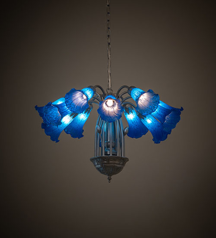 24" Wide Blue Tiffany Pond Lily 12 Light Chandelier