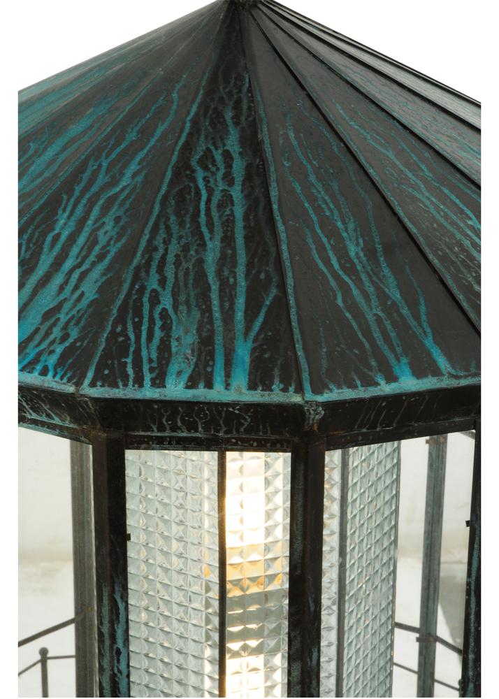 A shining beacon of light. Invite welcoming illumination and decorative detail to any interior or exterior with this stunning Lighthouse styled lantern pendant. The Outer Lens features Clear Glass that reveals an Inner Diffuser of Prismatic Patterned Glass. The fixture is enhanced with a frame and hardware featured in a Verdigris Green finish. The lantern is designed with an ornamental balustrade and catwalk styled trim around the lower perimeter. Custom sizes; styles and colors are available; as well as dimmable energy efficient lamping options such as LED. The 28.5-inch wide fixture is UL and cUL listed for dry and damp locations.