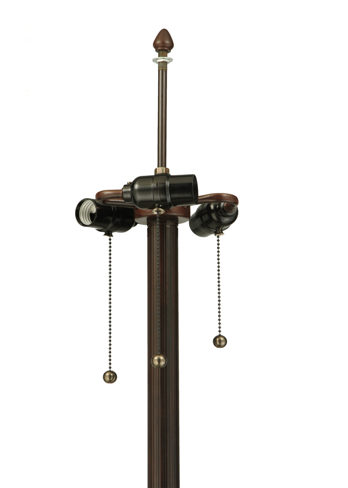 Exquisite Purple and Sunburst colored trim with Amber jewels adorn Beige Iridescent glass on this conical lamp shade. This stunning shade is constructed with Meyda Tiffany's famous copperfoil construction process. The elegant lustrous floor base is finished in a warm Mahogany Bronze.