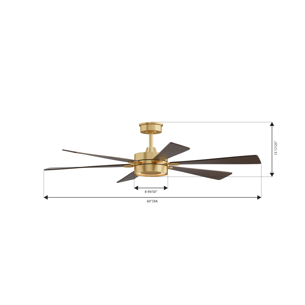 60" 6-Blade 5CCT LED Smart Ceiling Fan - Heritage Brass and Dark Oak Blades with Etched Lens