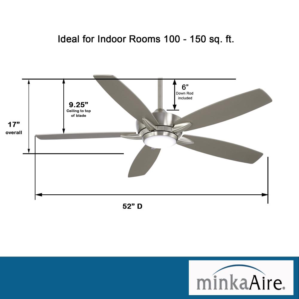 52" 5-Blade LED Ceiling Fan in Brushed Nickel Finish with Silver Blades and Etched White Lens