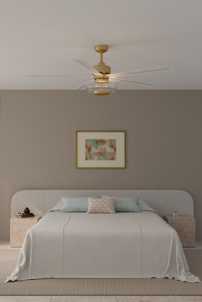 Featuring a Heritage Brass finish with Alabaster White blades and Clear shade.