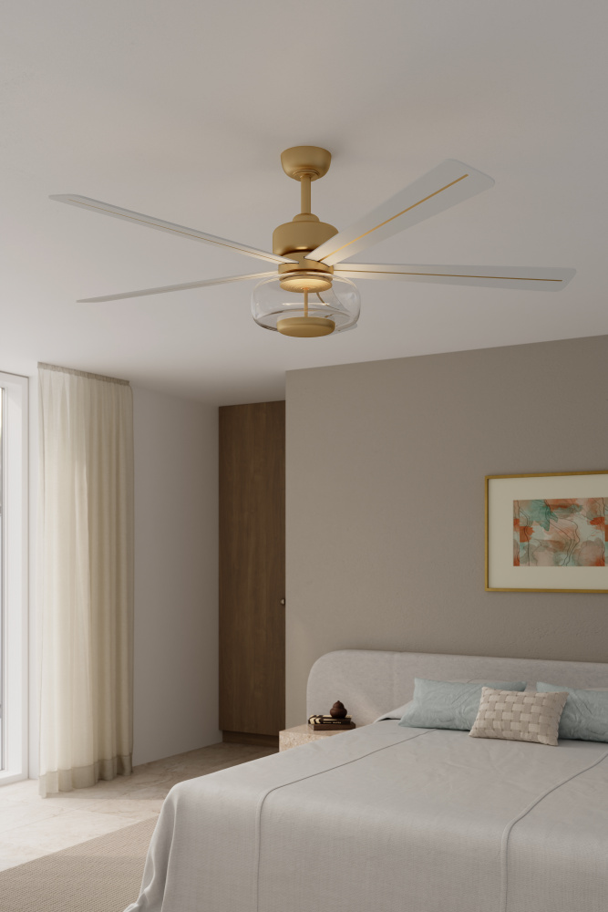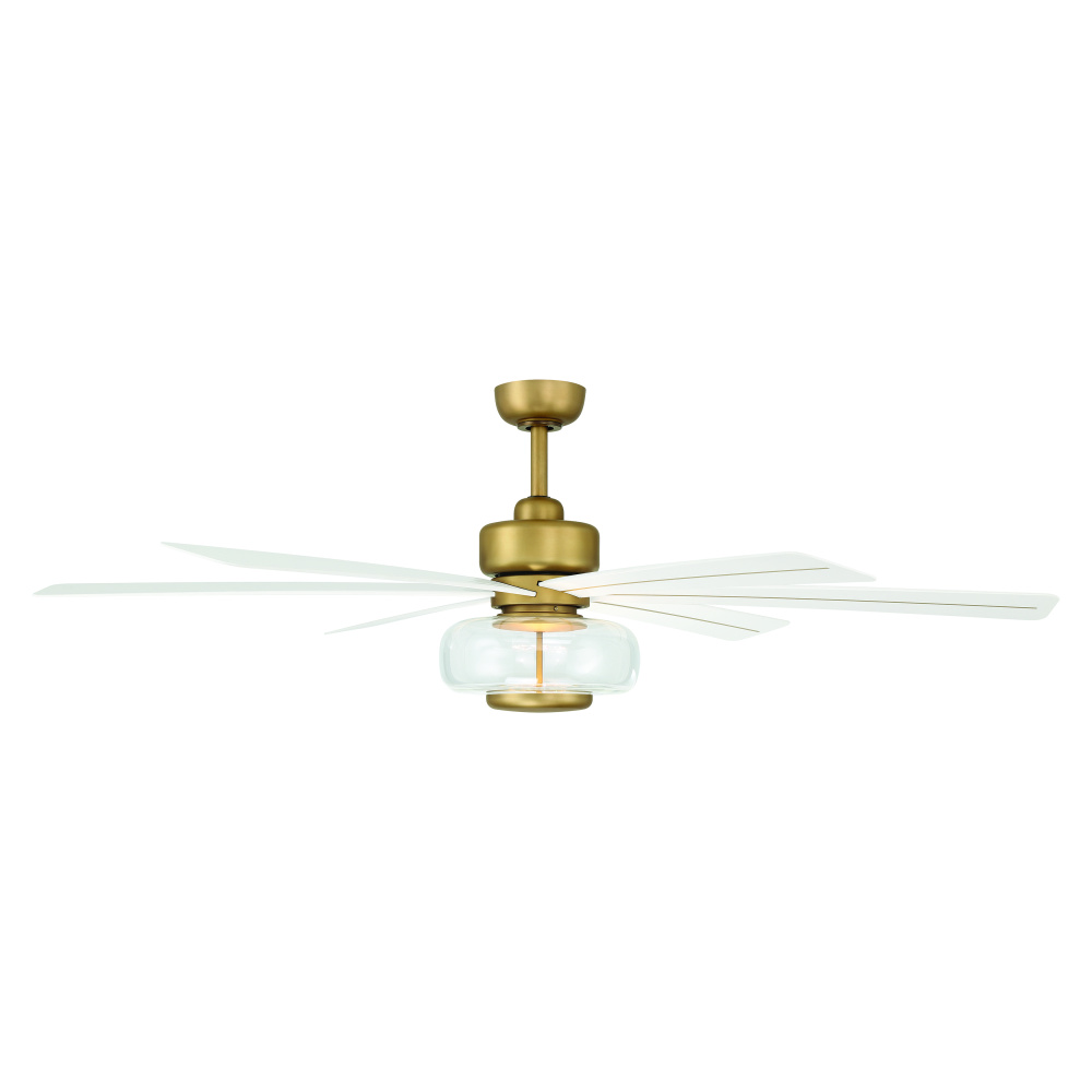 60" 6-Blade 5CCT LED Smart Ceiling Fan - Heritage Brass and Alabaster White Blades with Clear Glass