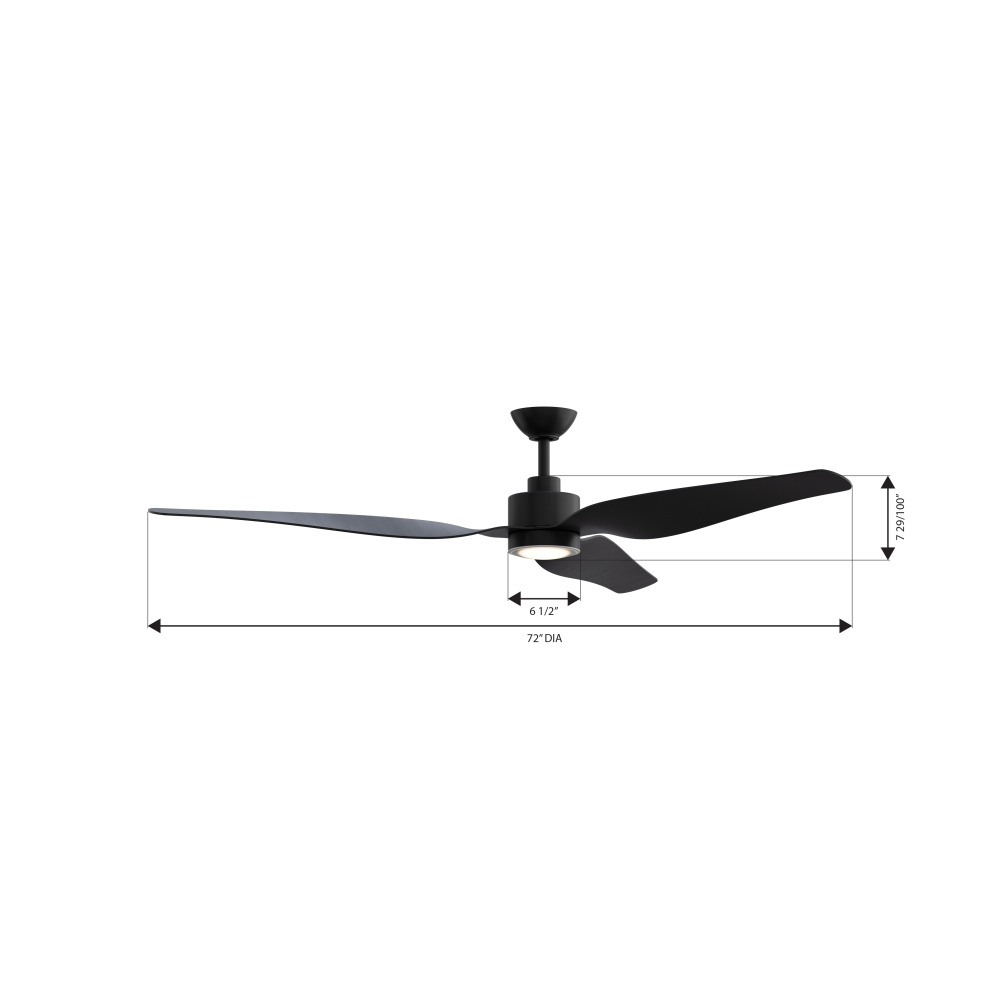 This ceiling fan measures 72"L x 72"W x 13.75"H with a 72" blade sweep.