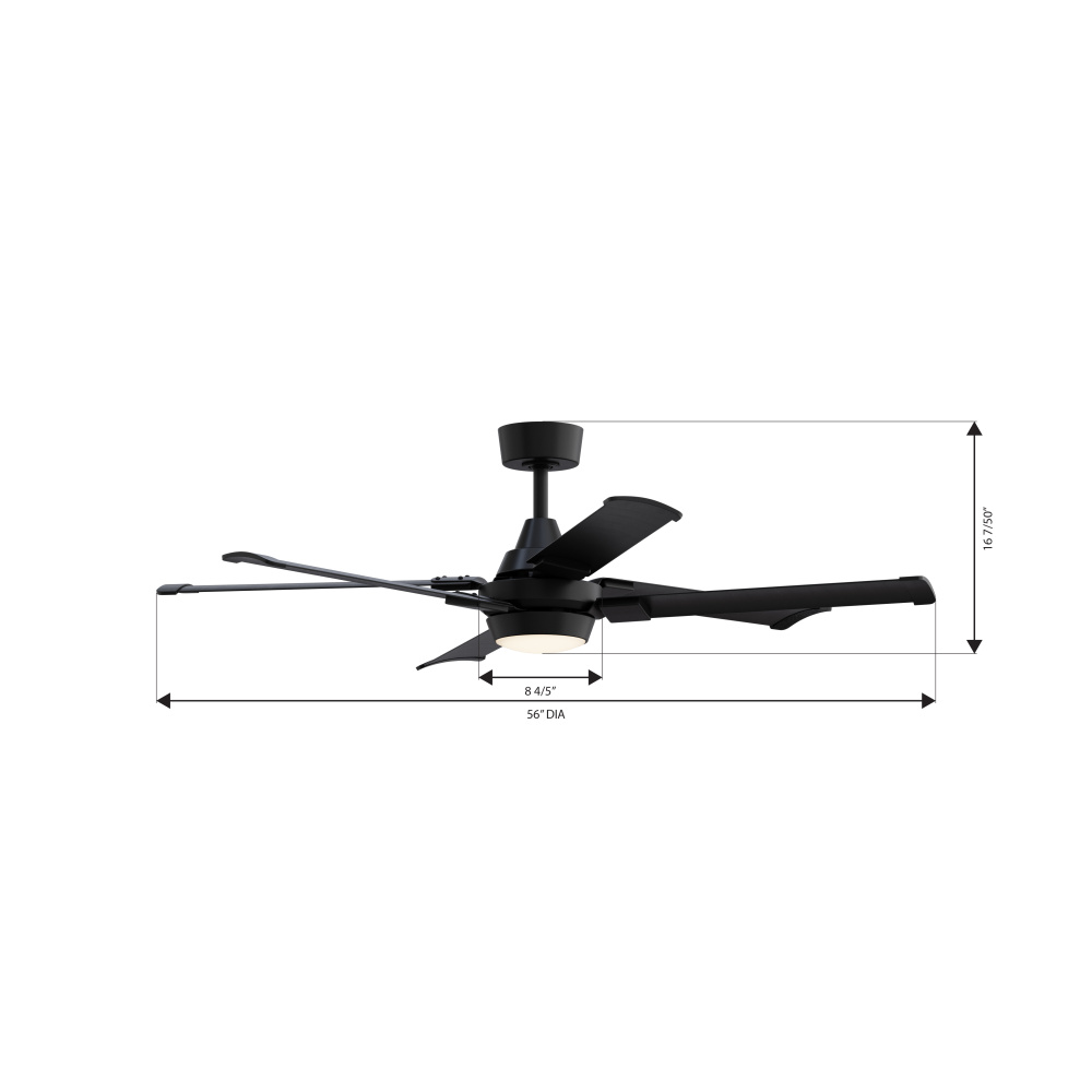 This ceiling fan measures 56"L x 56"W x 20.25"H with a 56" blade sweep.