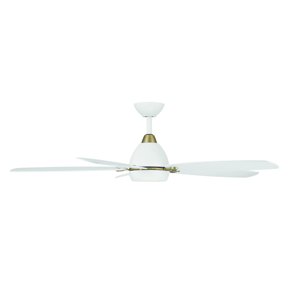 52" 5-Blade 5CCT LED Ceiling Fan - Alabaster White, Brushed Brass and Alabaster White Blades with Matte Lens
