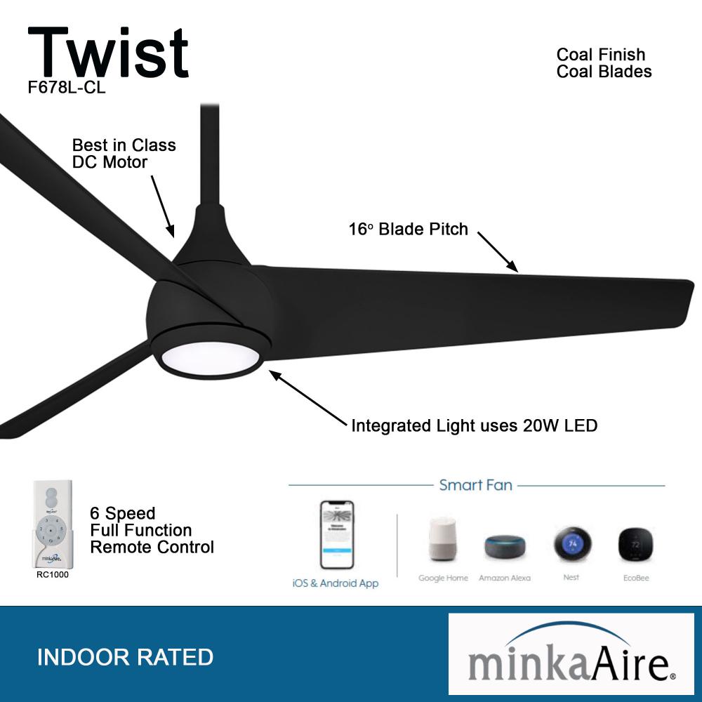 52" 3-Blade Ceiling Fan in a Coal Finish with Coal Blades and Etched Lens