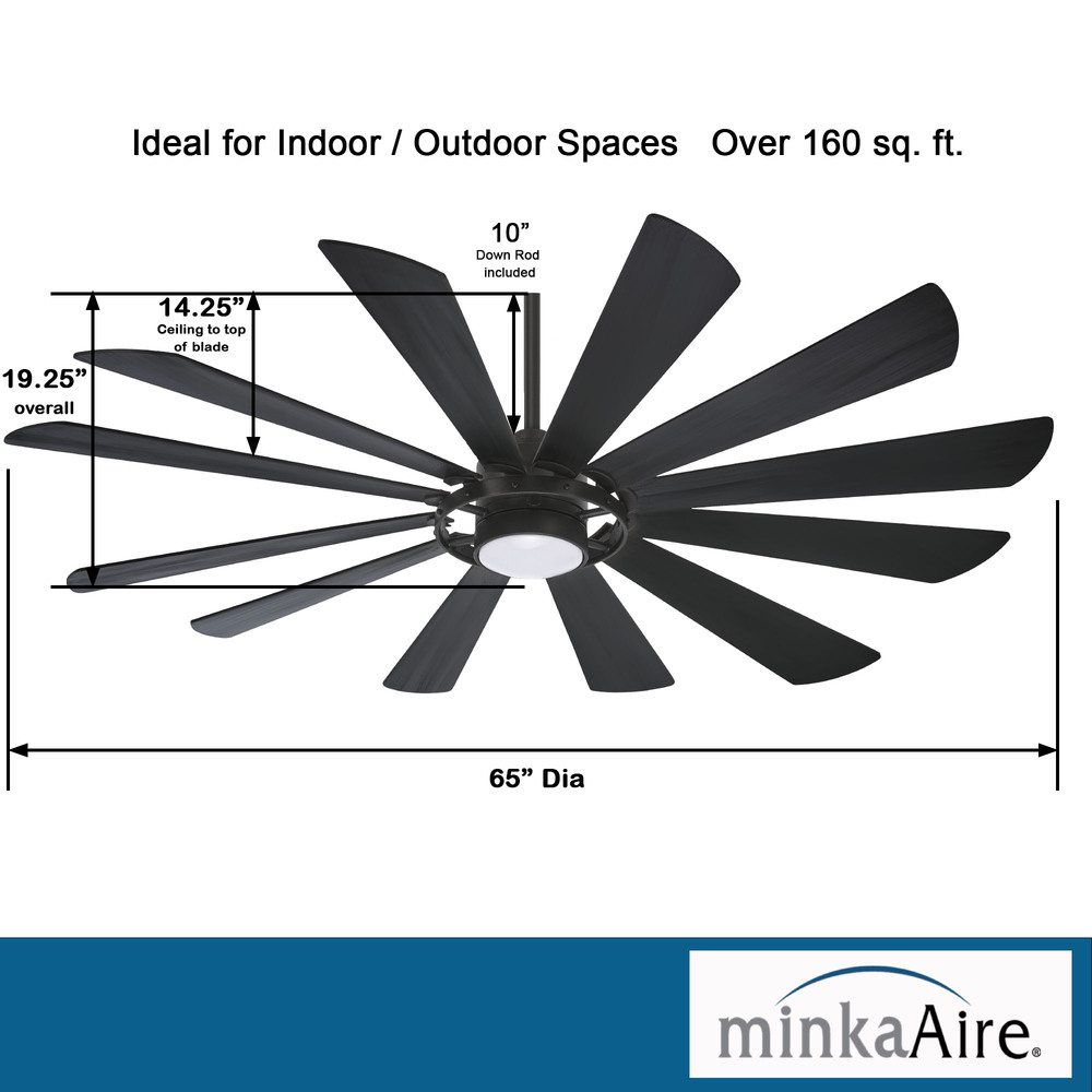 65" 12-Blade LED Ceiling Fan in a Textured Coal Finish with Coal Ashwood Blades and Etched Lens
