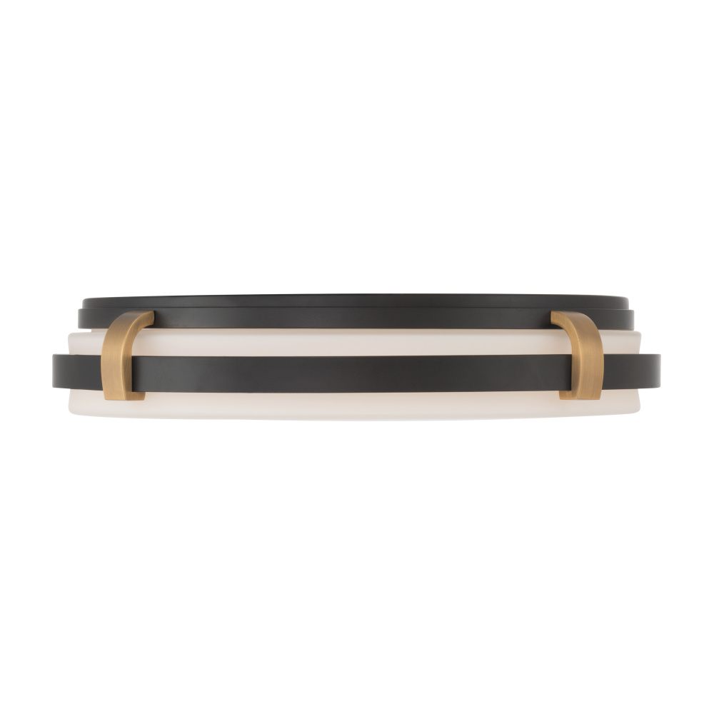 5CCT LED Flush Mount - Dark Matte Black and Legacy Brass with Etched Opal Glass