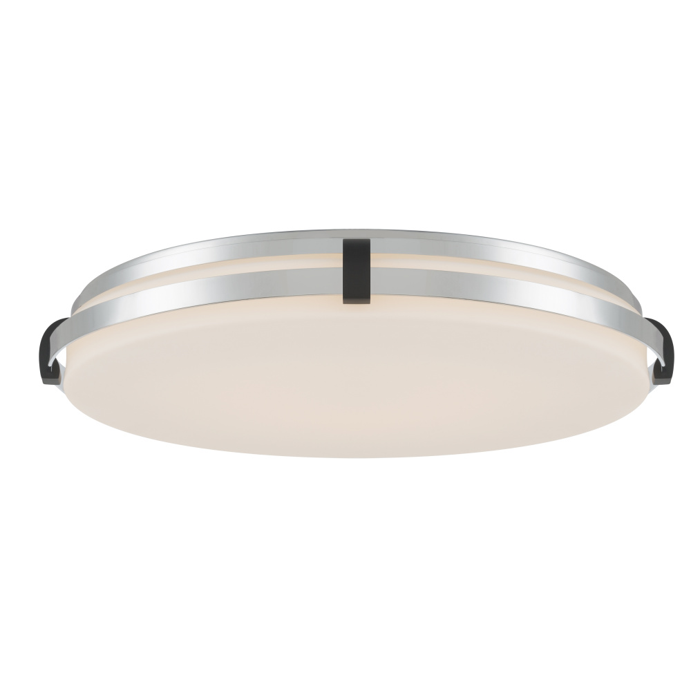 5CCT LED Flush Mount - Chrome and Dark Matte Black with Etched White Glass