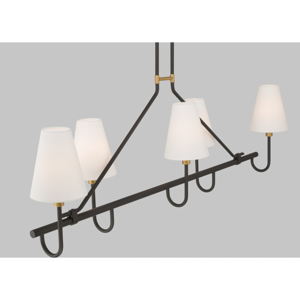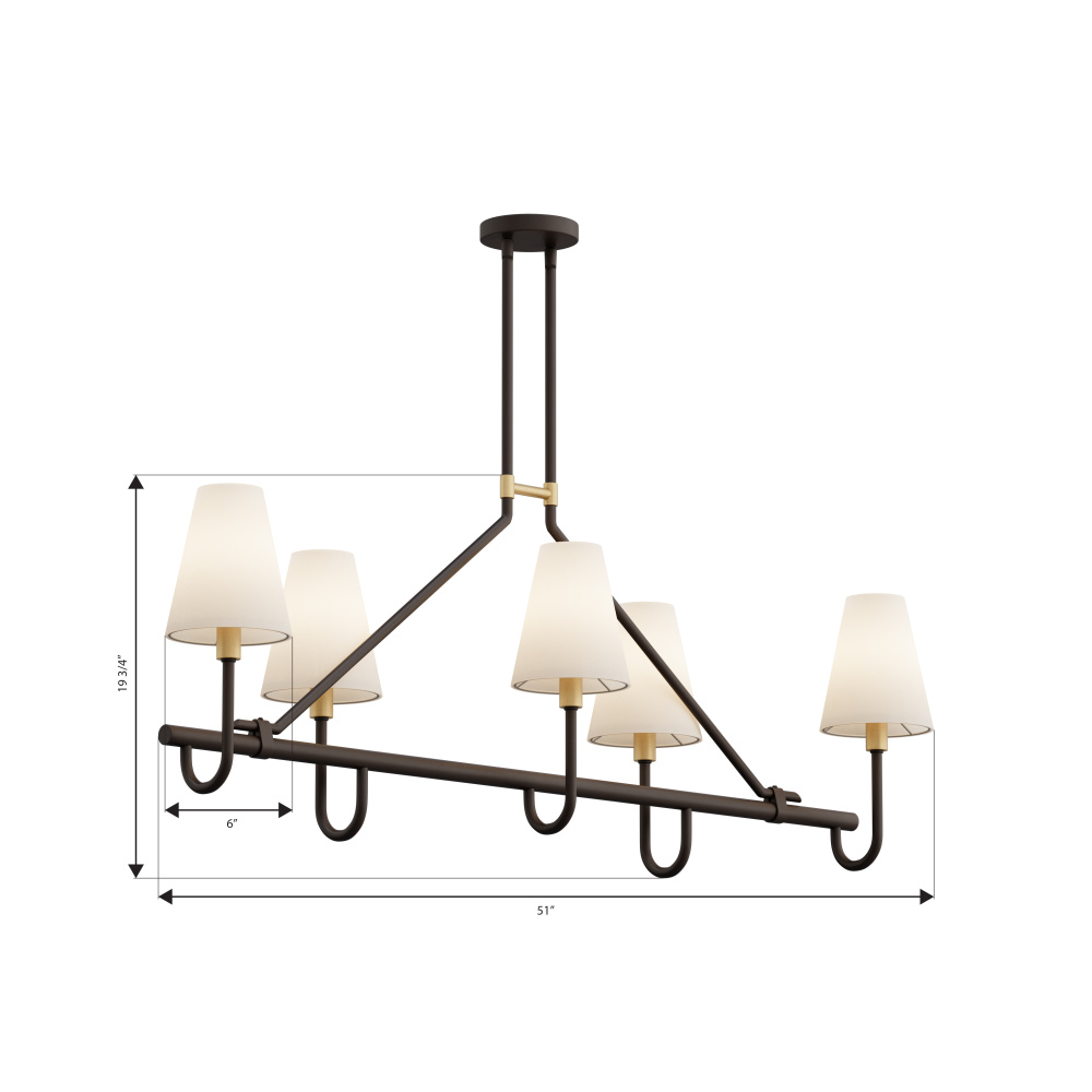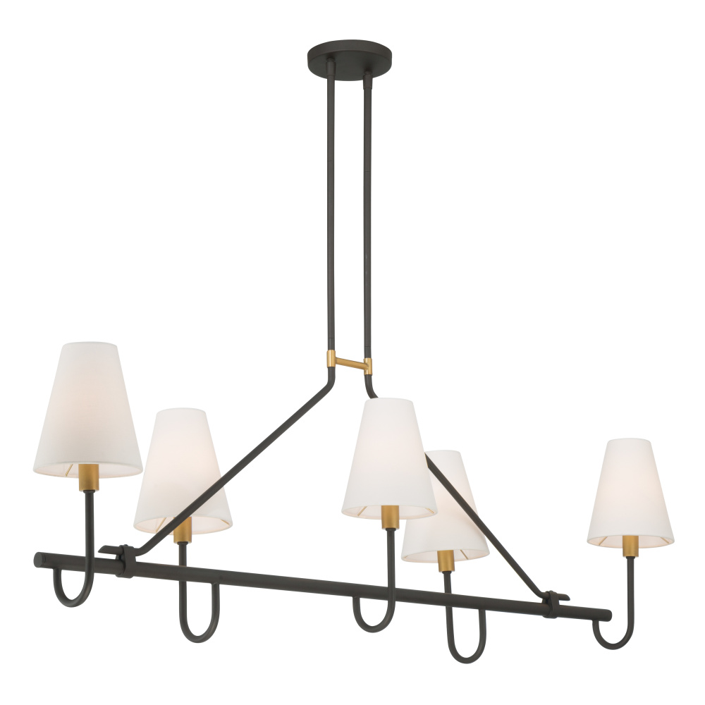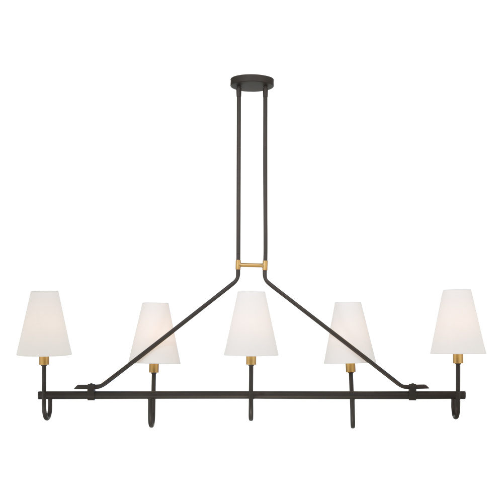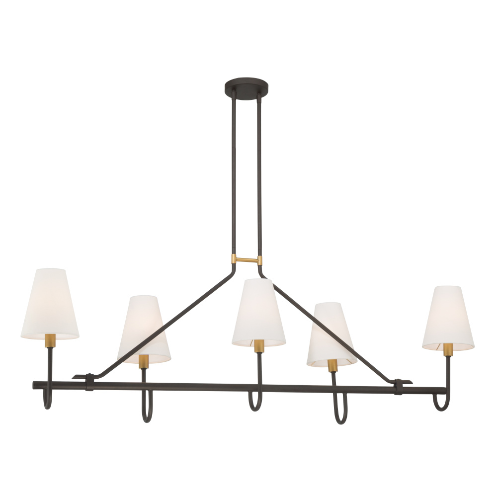 5-Light Linear Chandelier - Legacy Brass and Dark Bronze with White Linen
