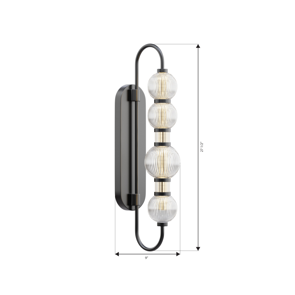 LED Wall Sconce - Dark Matte Black with Clear Ribbed Glass