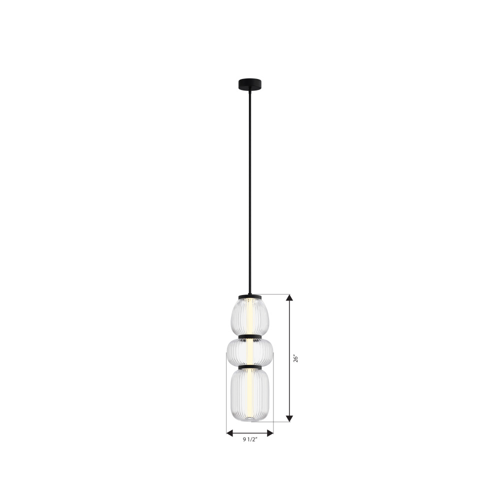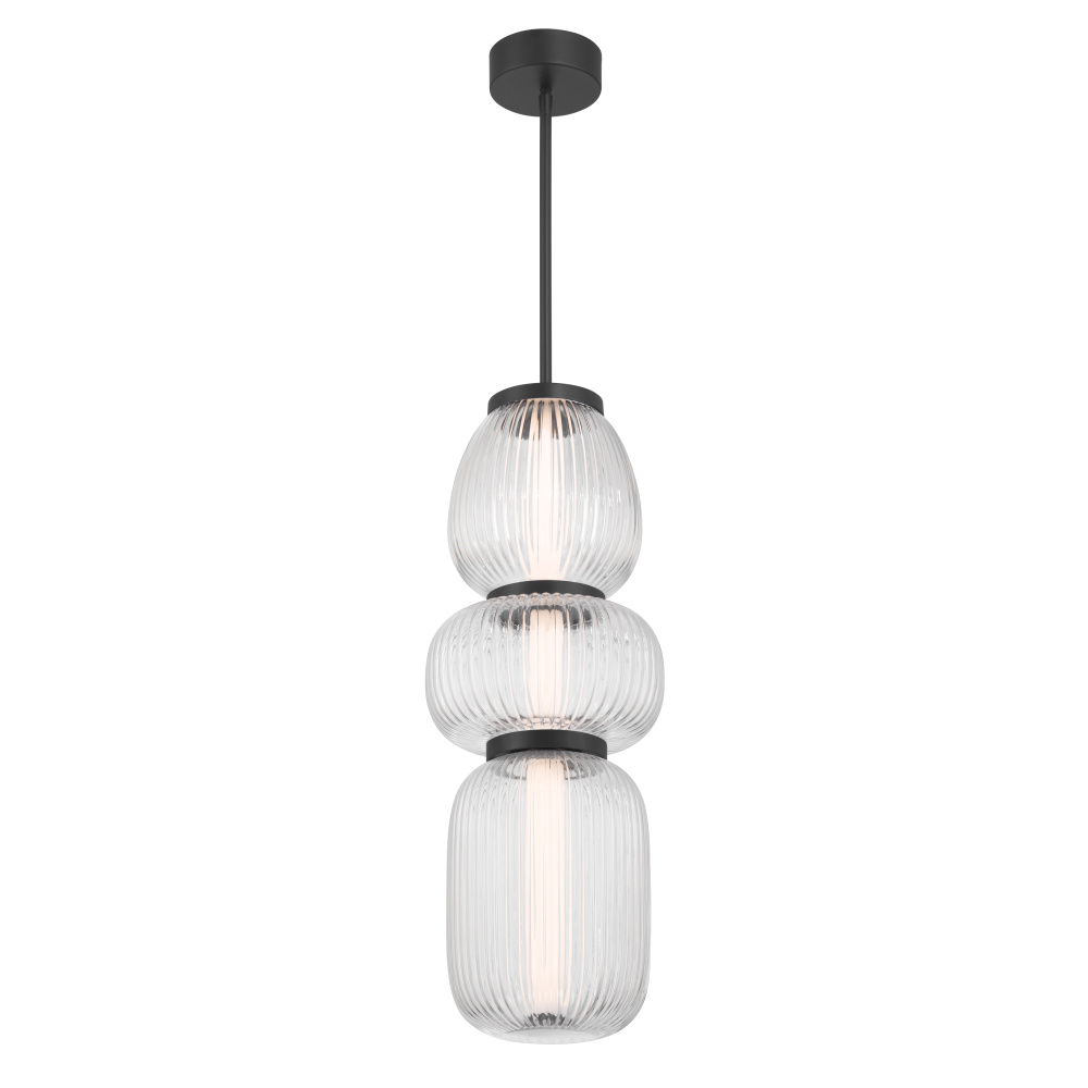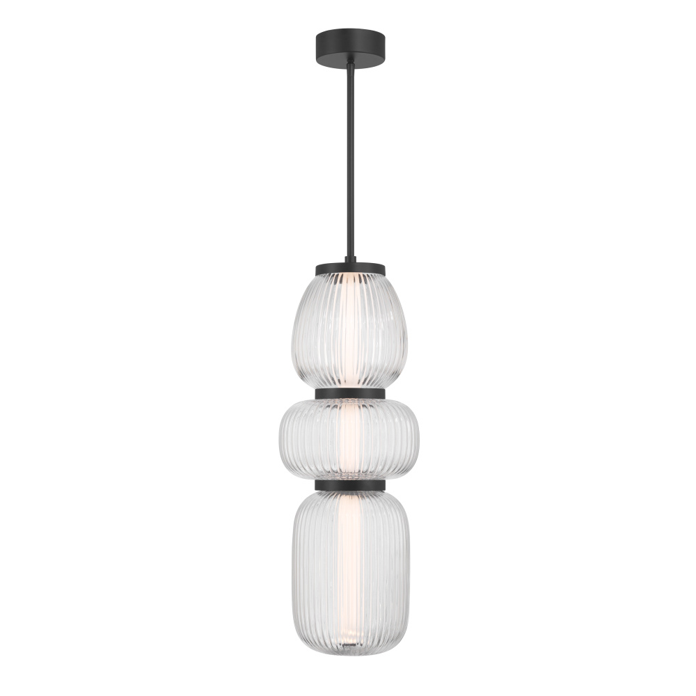 LED Mini Pendant - Dark Matte Black with Clear Ribbed Glass