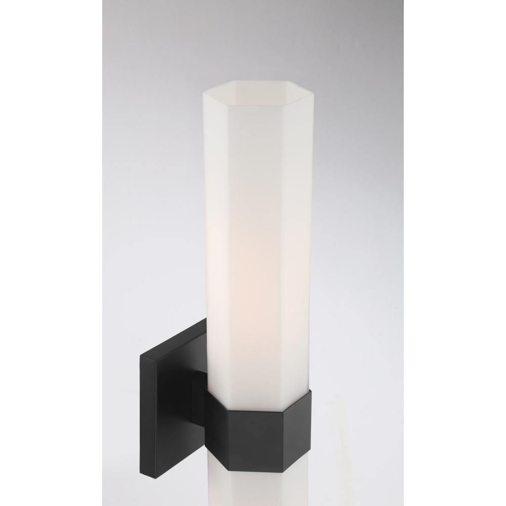 Featuring a Dark Matte Black finish with a Etched Opal shade.