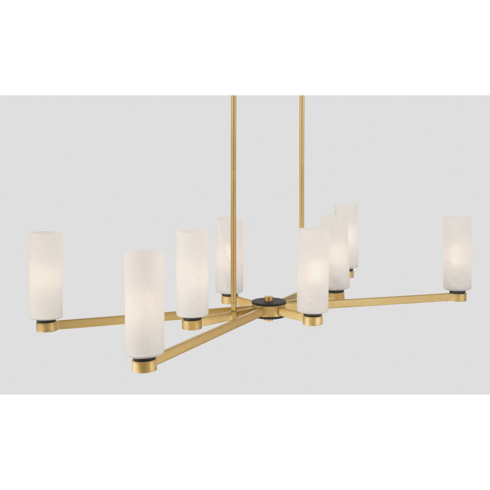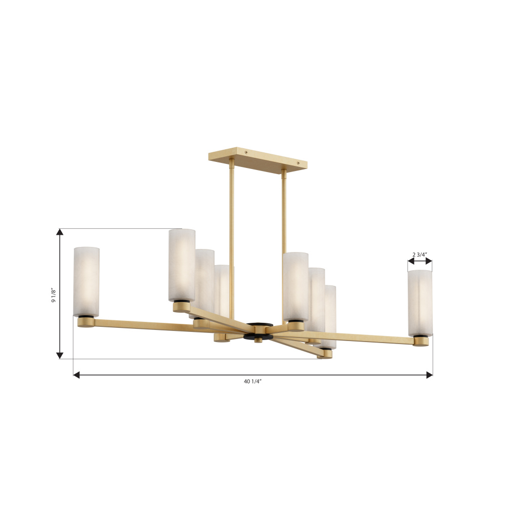 8-Light Linear Chandelier - Legacy Brass and Dark Matte Black with Etched Alabaster Glass