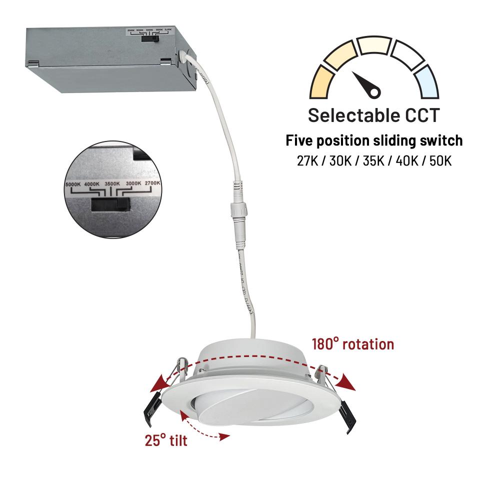 4" FLIN Adjustable LED Downlight with Selectable CCT, 900lm / 10W, Matte Powder White finish