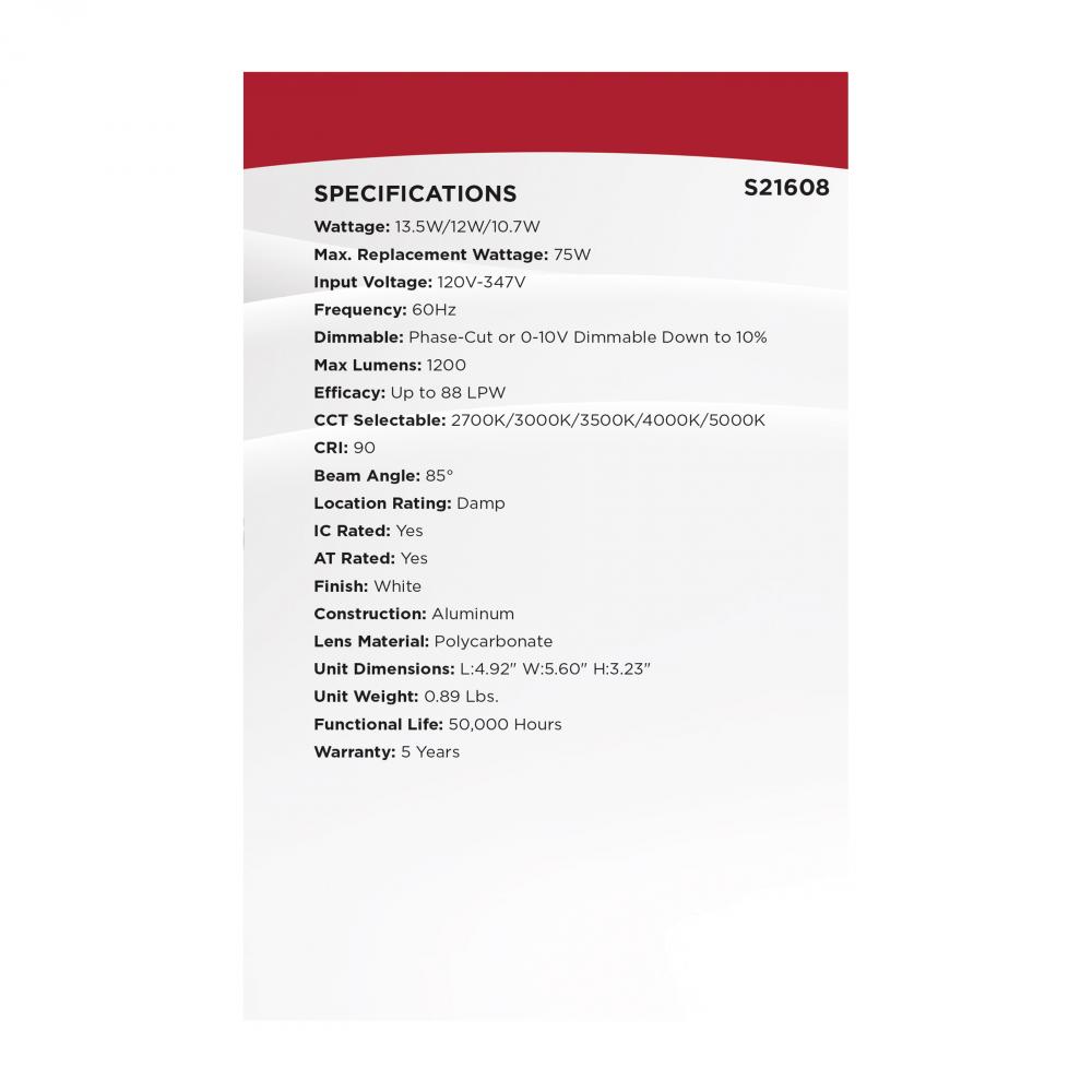 Field Selectable - 5 CCT and 3 Wattage