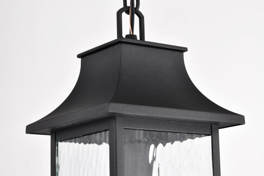 Austen Collection Outdoor 17 inch Hanging Light; Matte Black Finish with Clear Water Glass