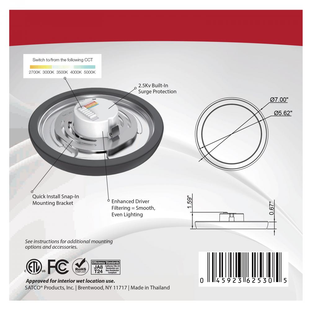 Blink Pro - 11W; 7in; LED Fixture; CCT Selectable; Round Shape; Black Finish; 120V