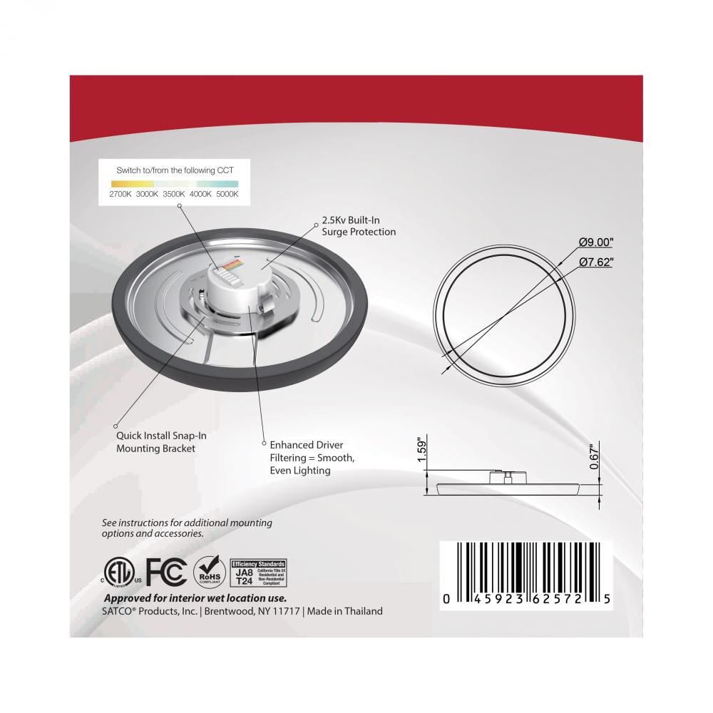 Blink Pro - 13W; 9in; LED Fixture; CCT Selectable; Round Shape; Black Finish; 120V