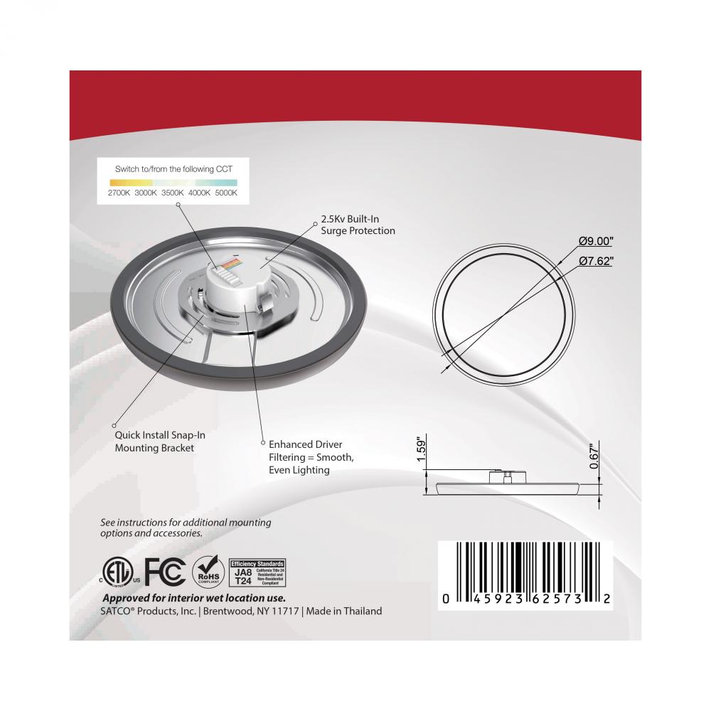 Integrated LED featuring 13 watts, CCT Selectable from warm to natural light, 90 CRI