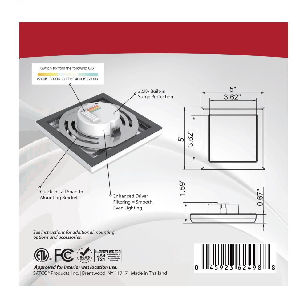 Visit Satco.com for optional accessories: 5 inch square extension collar; White - 25-1704, Black - 25-1705, Bronze - 25-1706