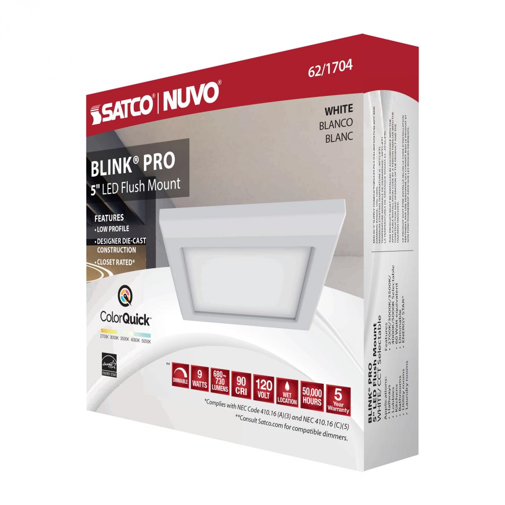 Blink Pro - 9W; 5in; LED Fixture; CCT Selectable; Square Shape; White Finish; 120V