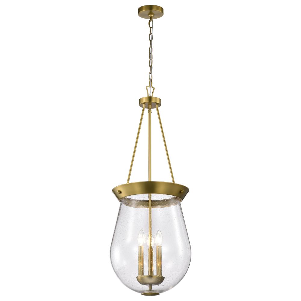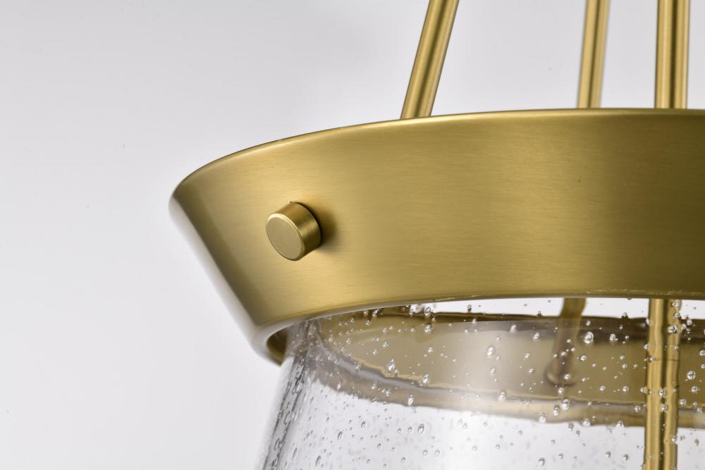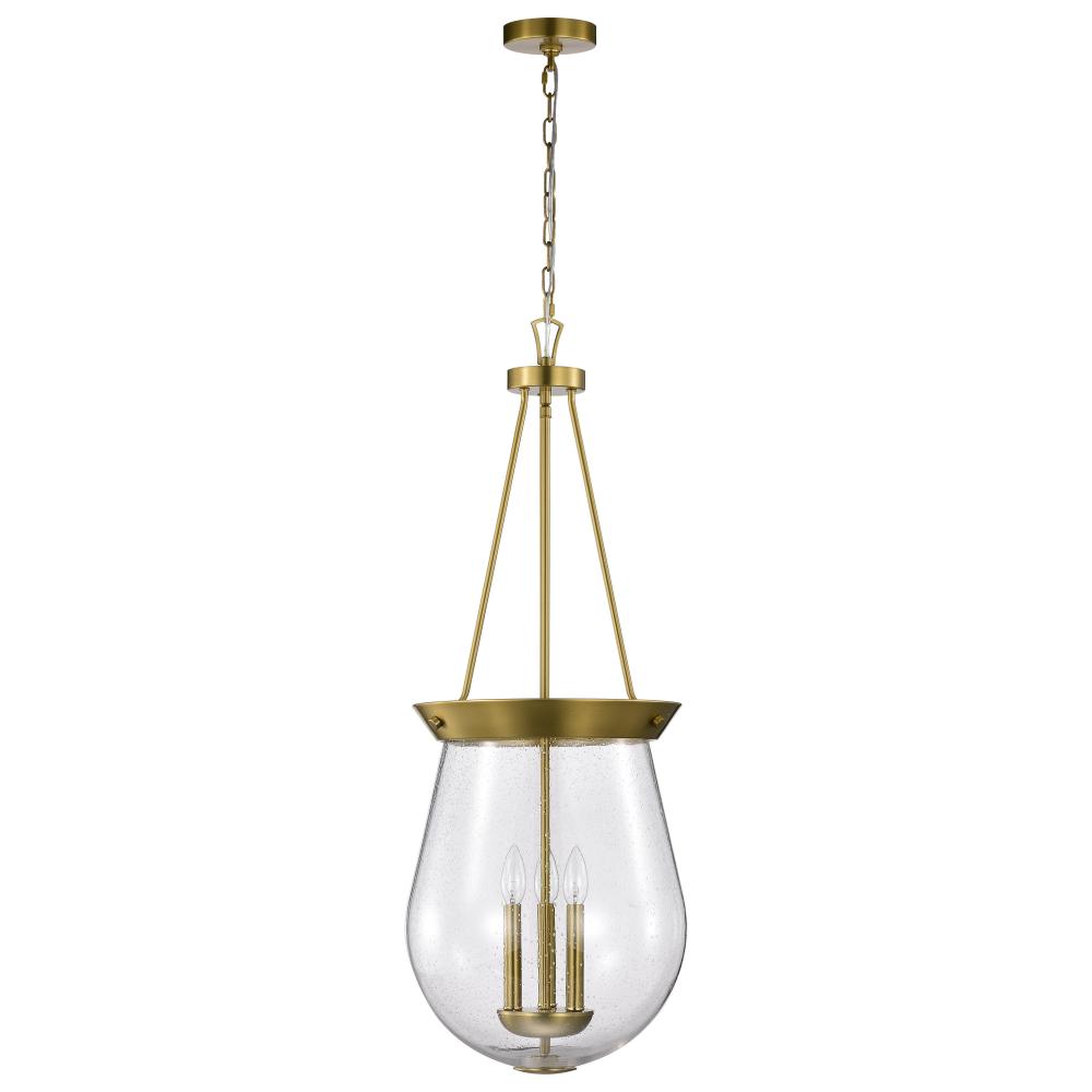 Boliver 3 Light Pendant; 14 Inches; Vintage Brass Finish; Clear Seeded Glass
