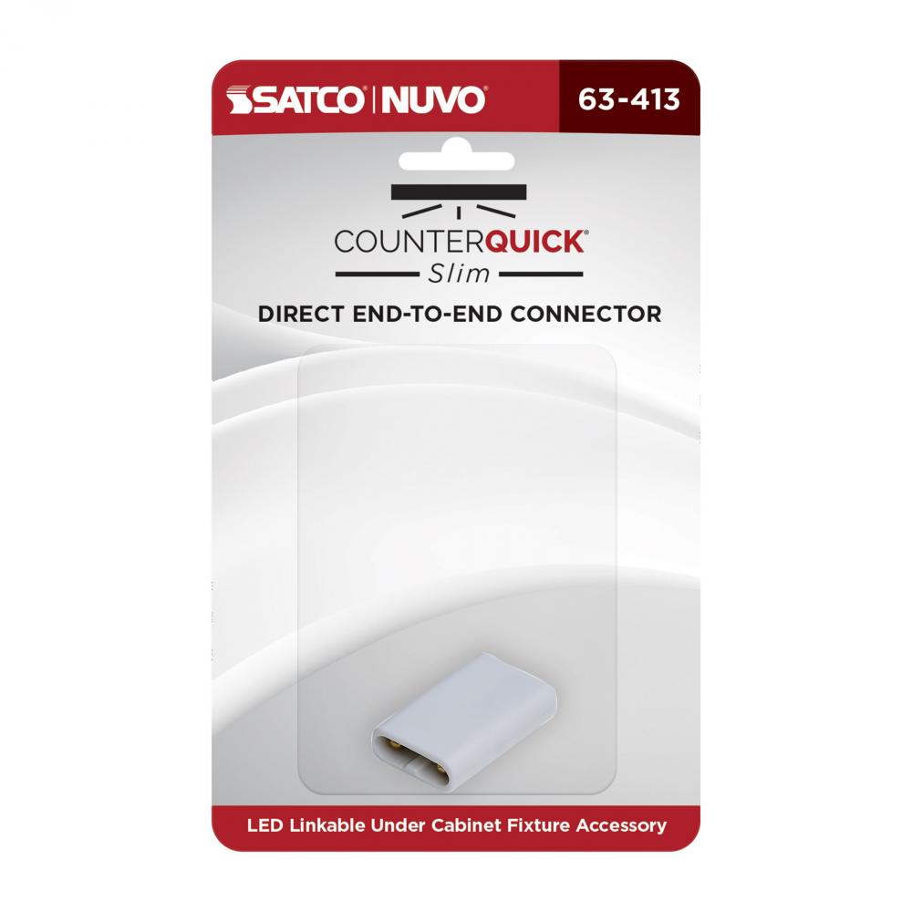Skip the extra steps of wiring each fixture individually, by linking them together with the 63-413 direct end to end connector in white. CounterQuick Slim end-to-end connectors make connecting under cabinet fixtures together quick and easy.