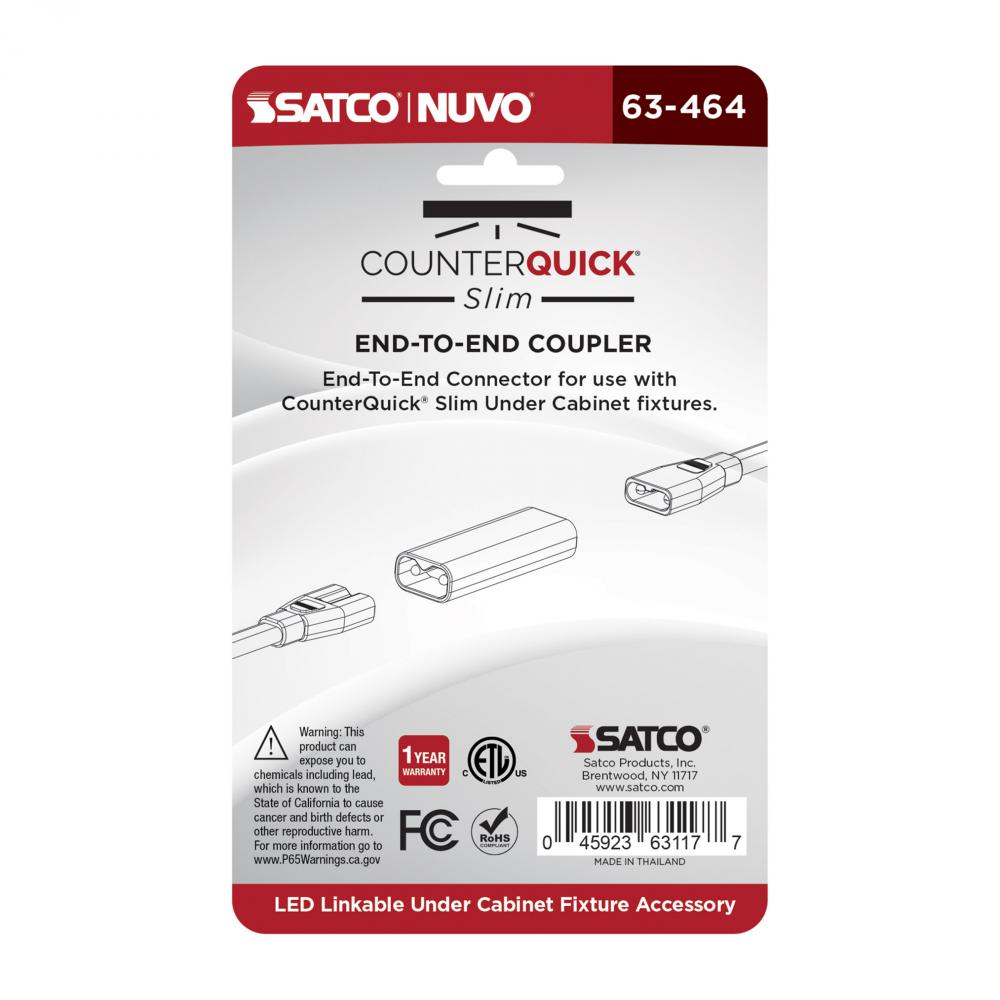 Connect two cables together using the 63-464 coupler in a black finish, to extend the overall length of your CounterQuick Slim under cabinet system. No need to cut and splice just plug in and go.