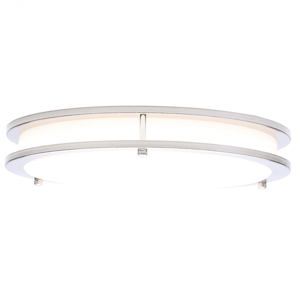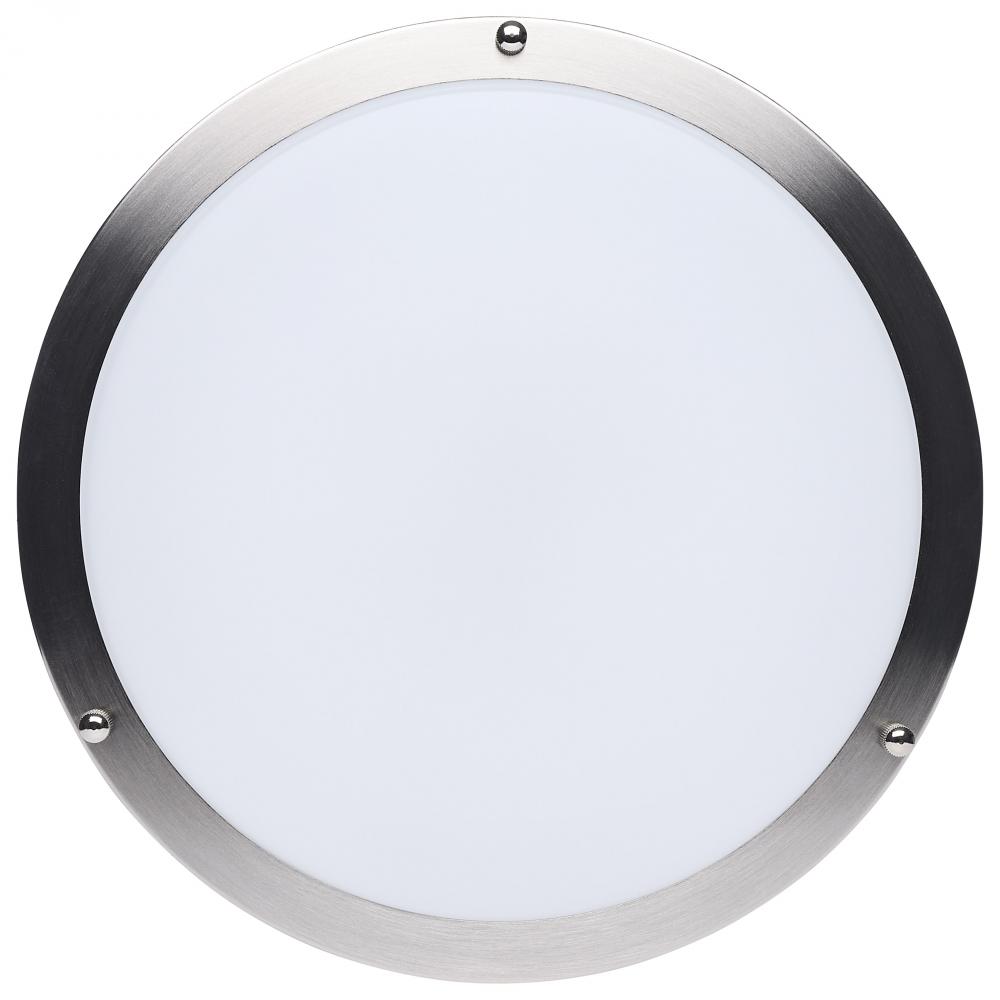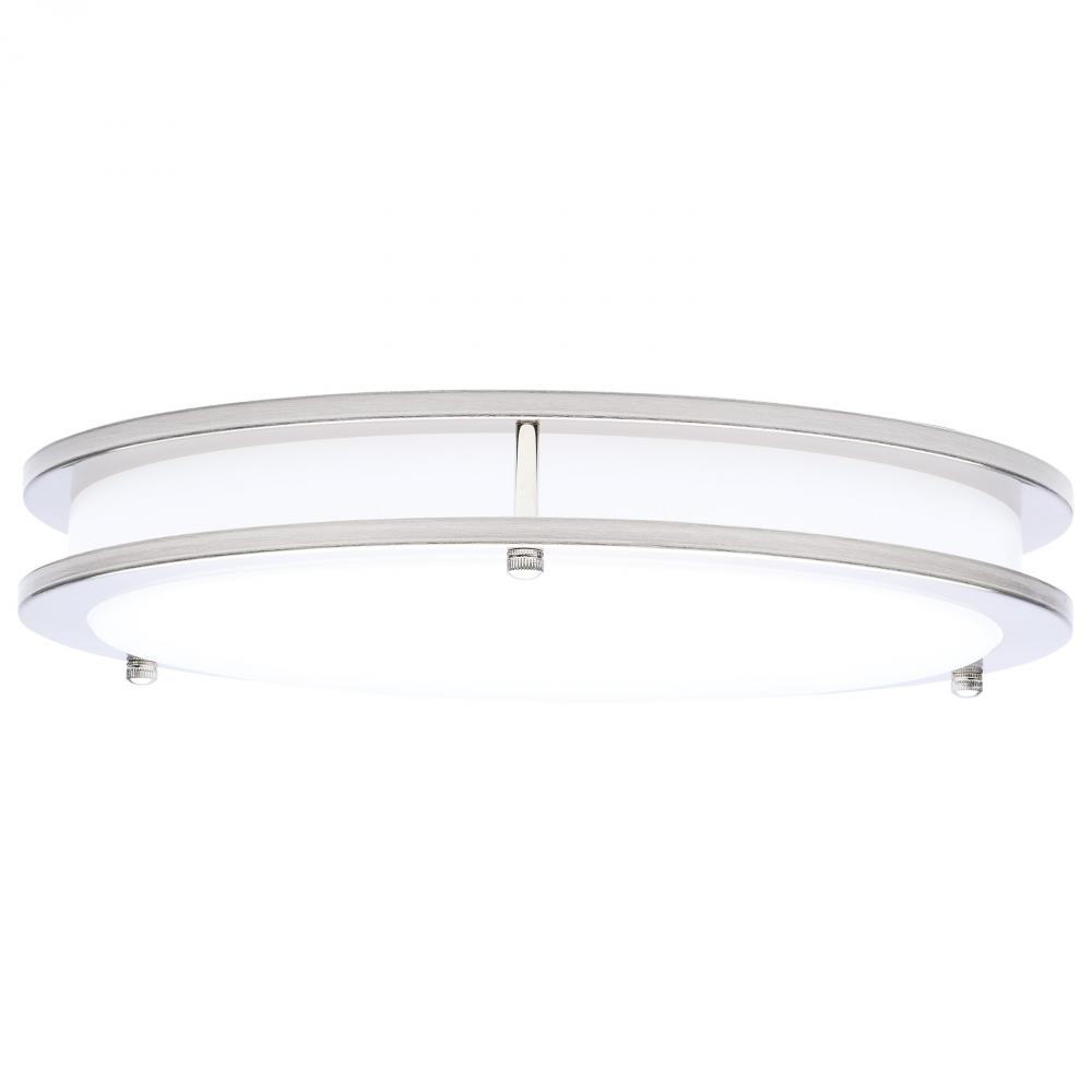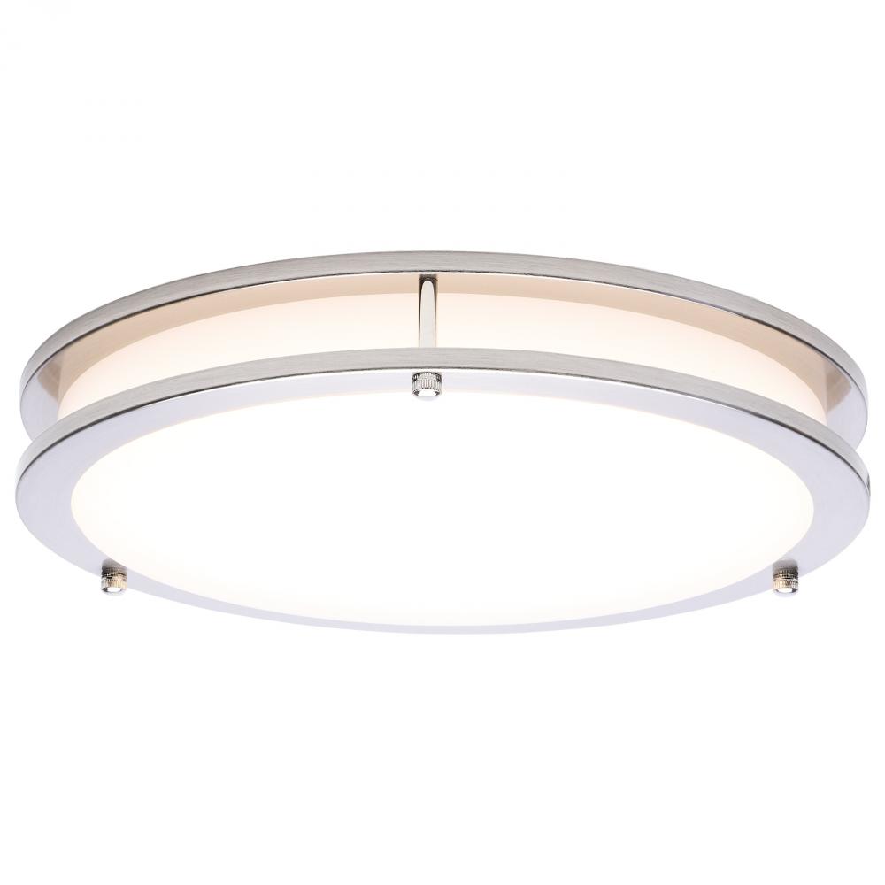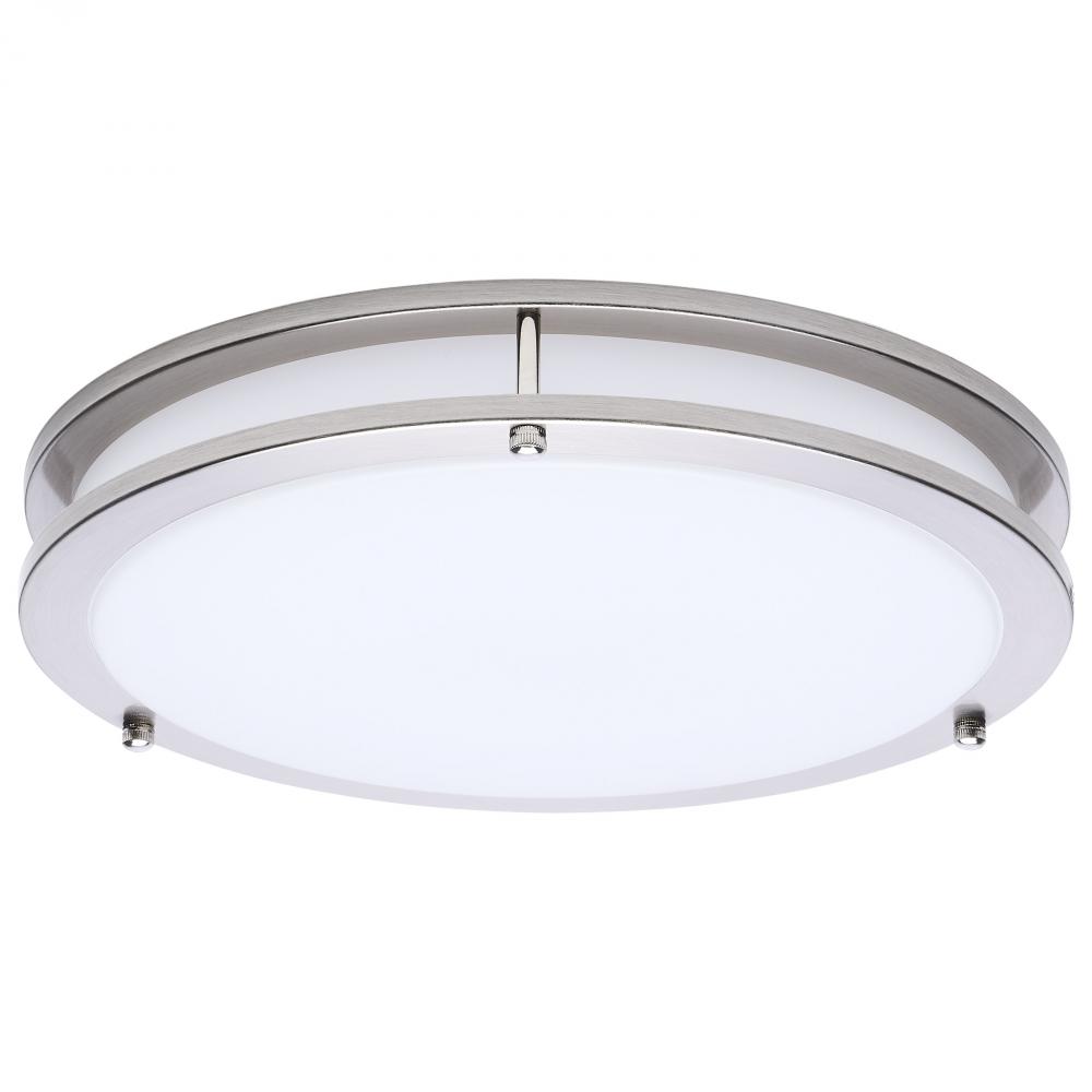 The SATCO NUVO 62-1876 Glamour 13-inch Round Flush Mount in Brushed Nickel delivers sleek, modern lighting with 5 CCT selectable technology (2700K–5000K) and 90 CRI illumination for enhanced color rendering. This 25-watt fixture replaces 150W incandescen