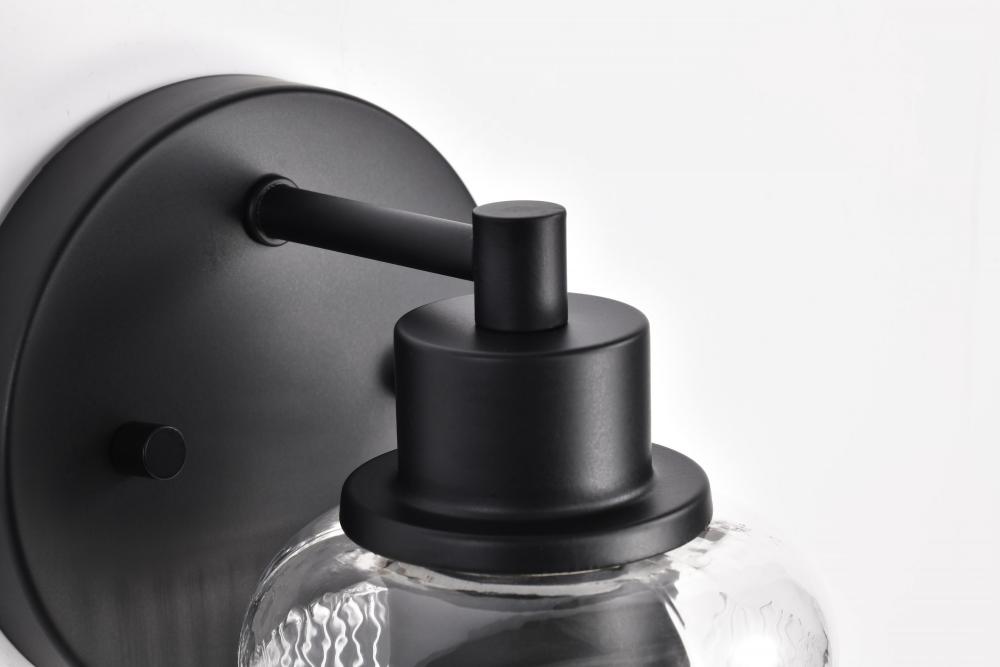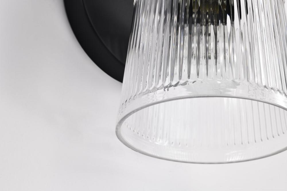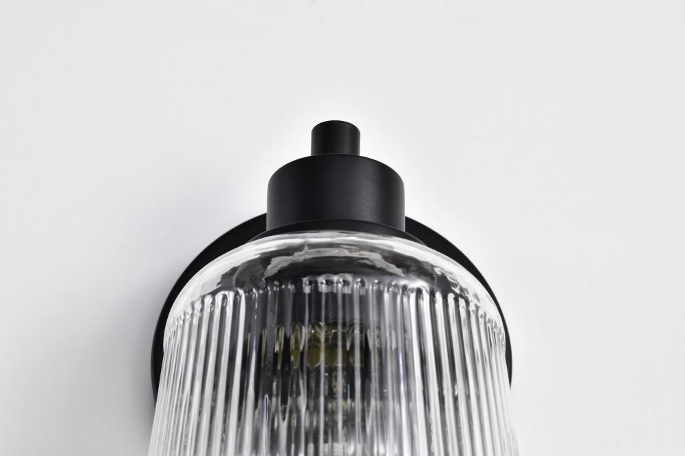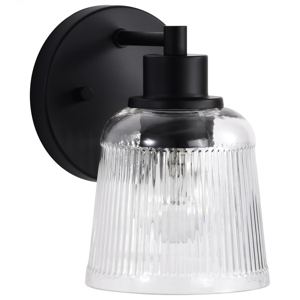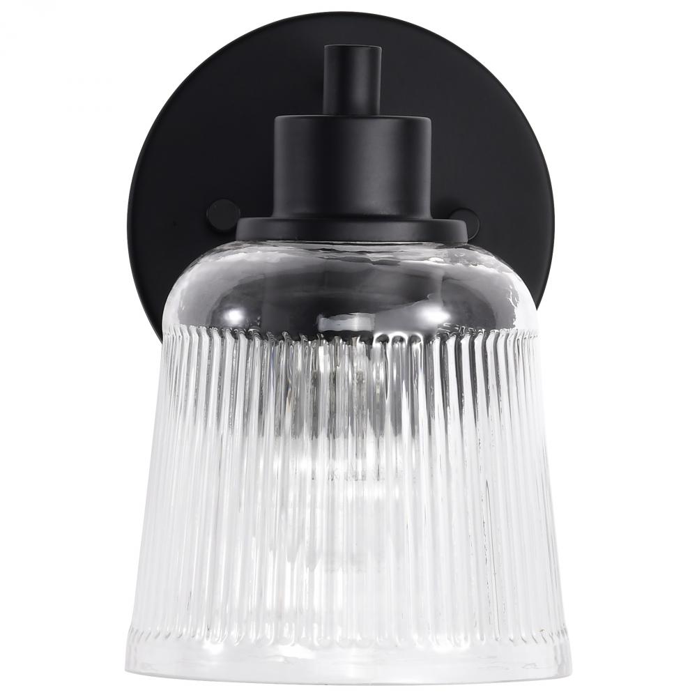Grayson; 1 Light Vanity; Matte Black Finish; Clear Ribbed Glass