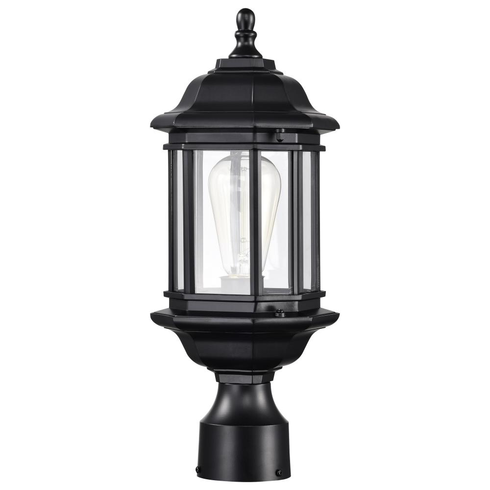 Hopkins Outdoor Collection 16 inch Small Post Light Pole Lantern; Matte Black Finish with Clear Glass